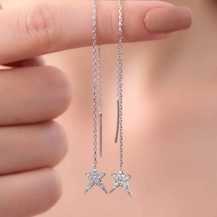 These handmade earrings are crafted from sterling silver with star zirconia and a chain drop design. They are sold as a pair.