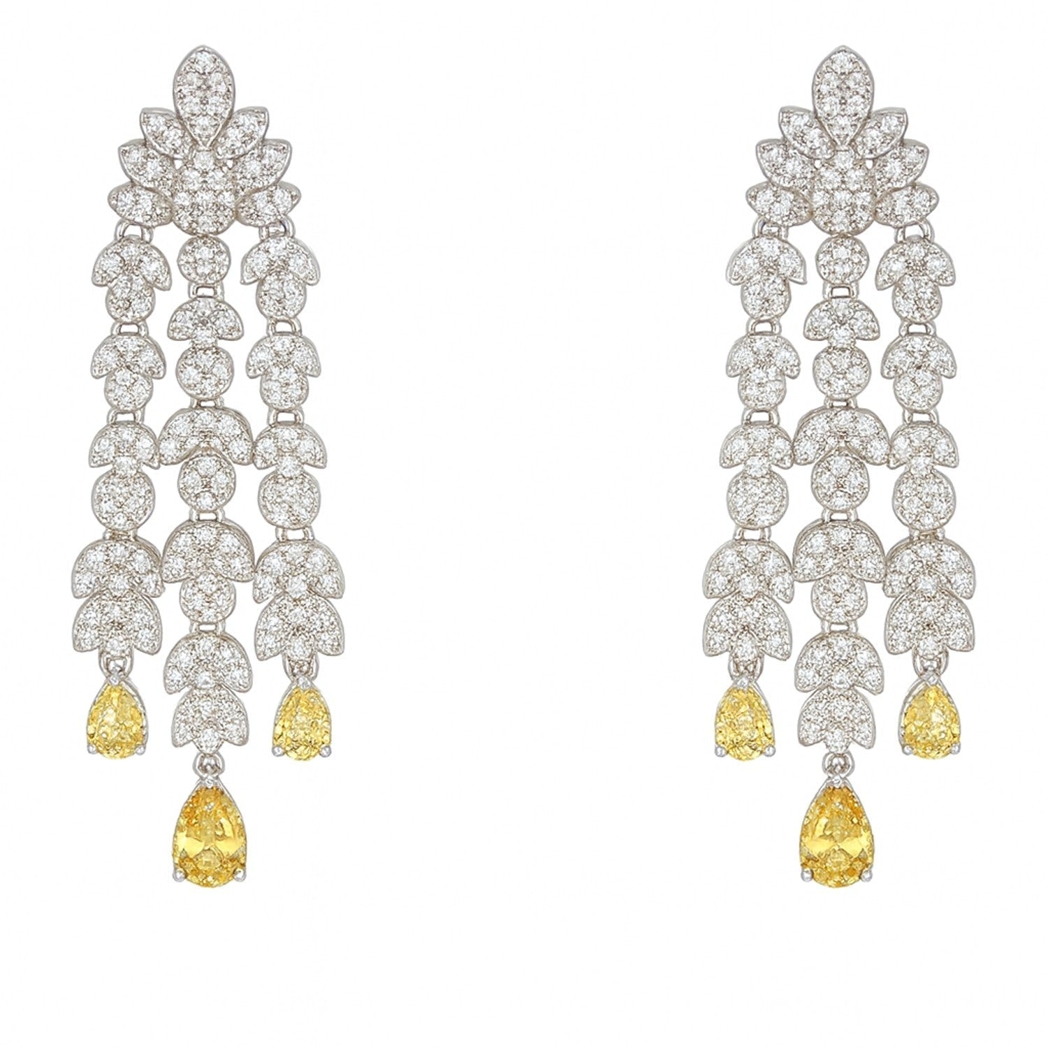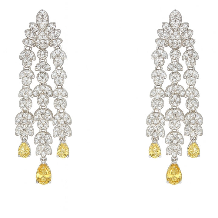 These earrings feature diamond cubic zirconia and canary pear-shaped cubic zirconia drops.