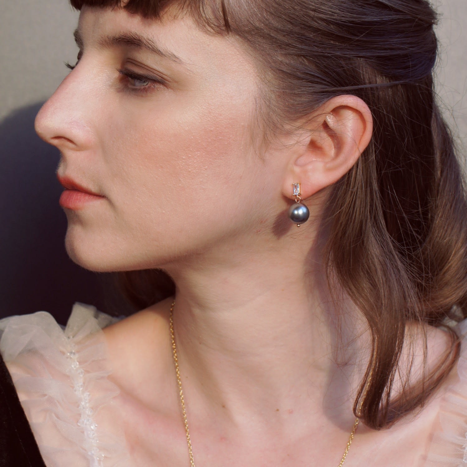 These In My Orbit Crystal & Pearl Drop Earrings - Grey by I'mmany London are an effortless and elegant accessory that transitions seamlessly from day to evening. Handcrafted in a London studio, they feature sparkly crystal studs and delicate faux pearl drops. The grey-toned stones add a modern, sophisticated touch, bringing subtle movement and refined glamour to your daily outfits.