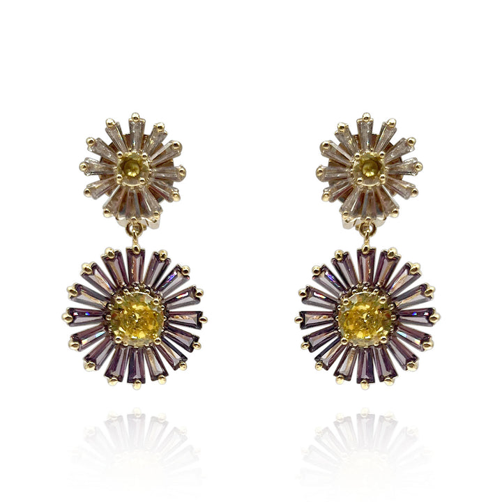 These clip-on earrings are crafted with lavender and yellow diamonds and crystal baguettes.
