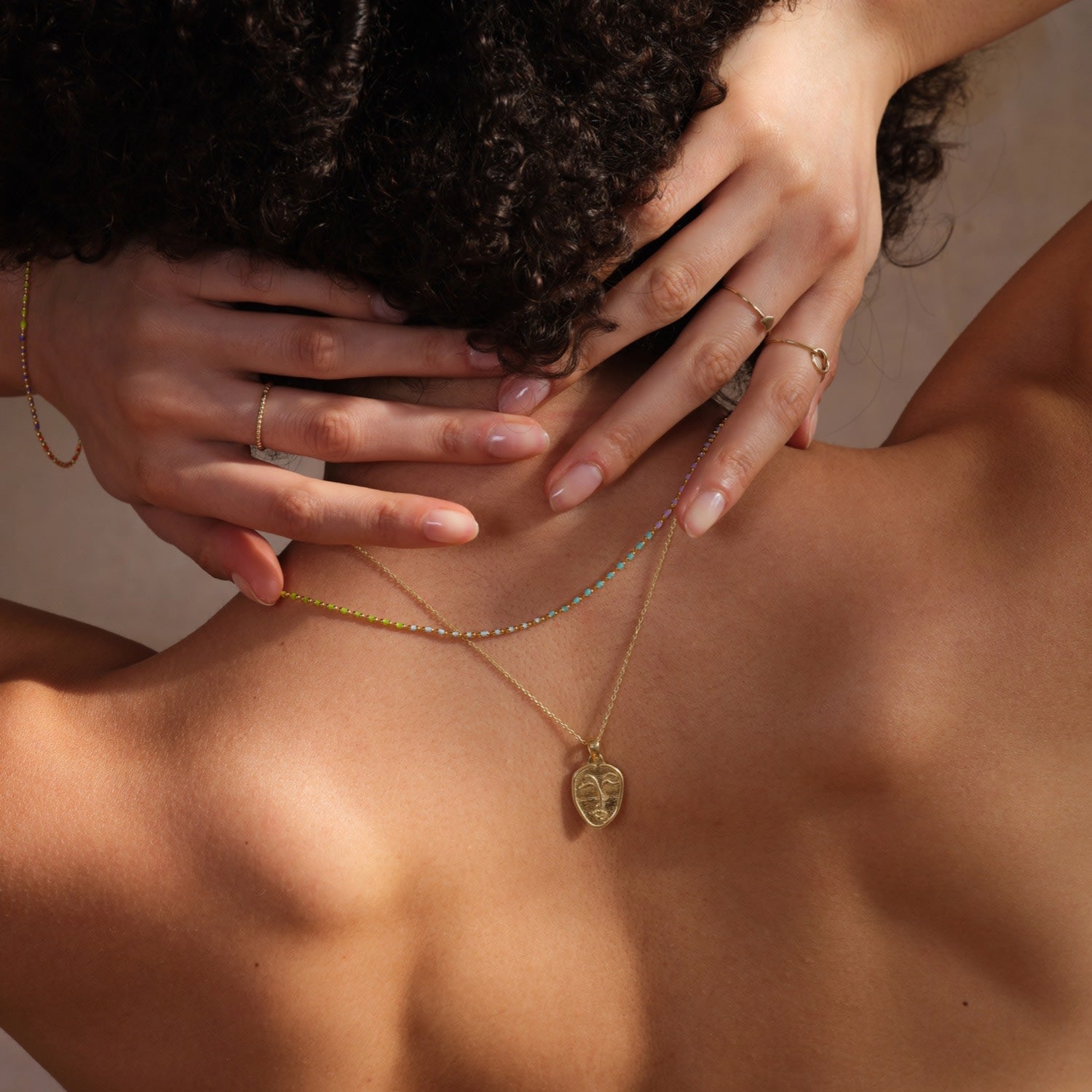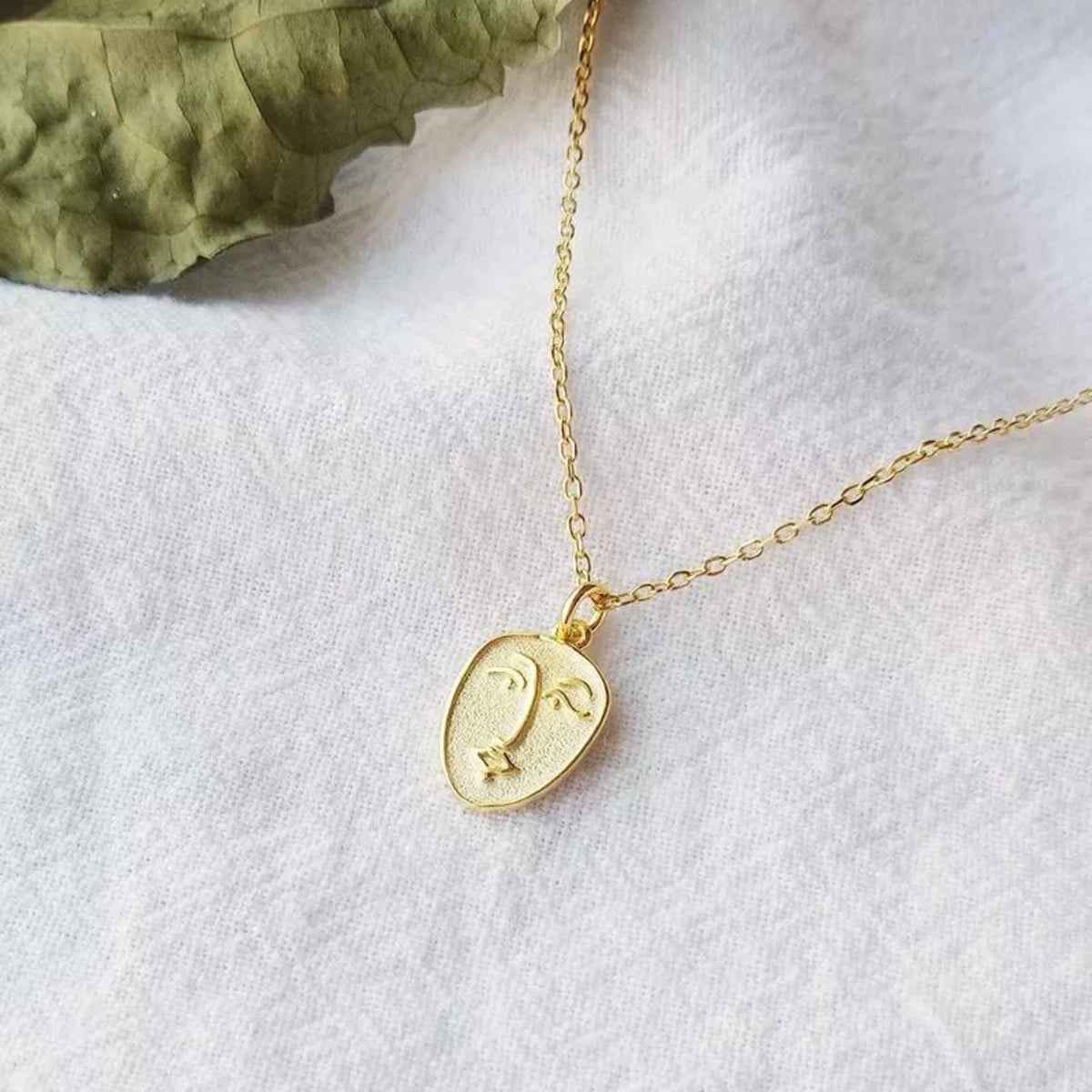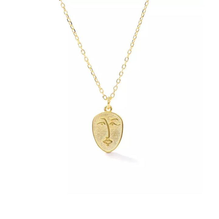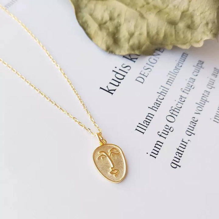 Abstract Face Monogram Medal Art Sterling Silver Necklace - Gold