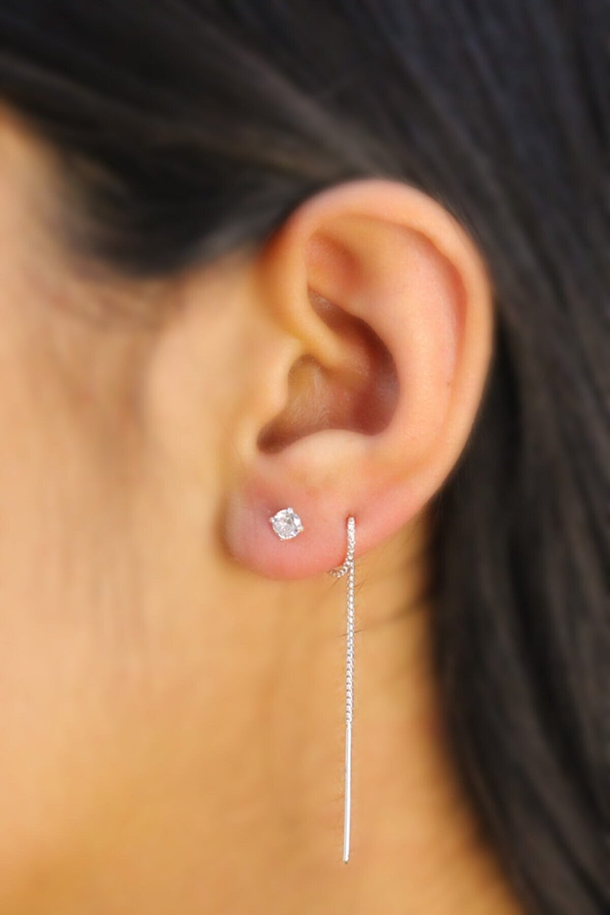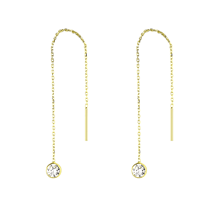 These Sterling Silver Chain Solitaire Earring - Gold by Spero London are sophisticated yet timeless, designed to add a touch of effortless elegance to any ensemble. Fashioned from 925 recycled sterling silver, they feature a delicate dangling drop chain with a shimmering cubic zirconia solitaire at the end. Their secure back lock ensures a worry-free fit, while the captivating sparkle makes them a perfect accent for a polished, chic look. These earrings are a charming and versatile gift for yourself or a loved one.