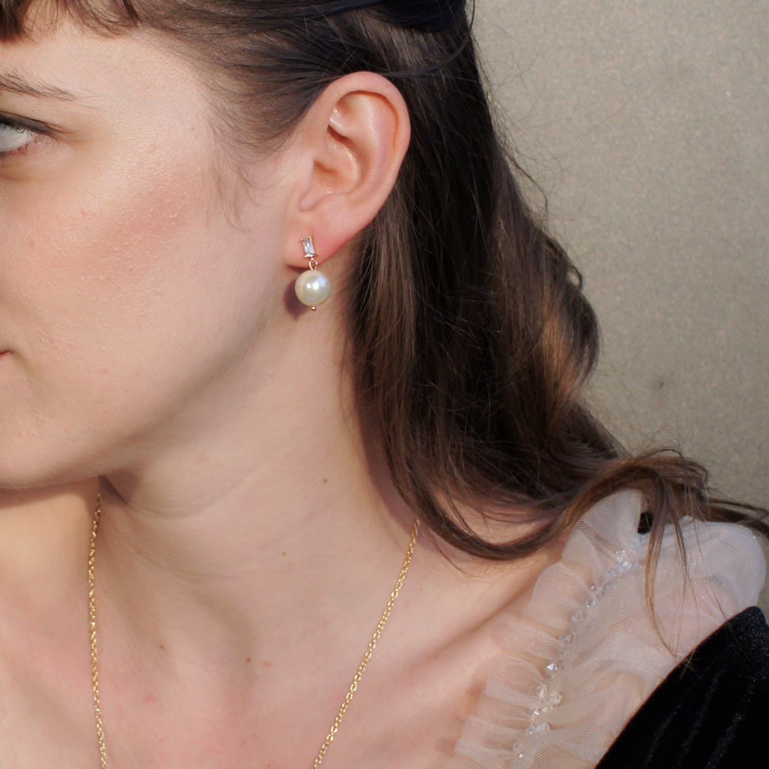 Handcrafted, these earrings are made with 18k gold-plated sterling silver, cubic zirconia crystals, gold-tone brass, and faux pearls.