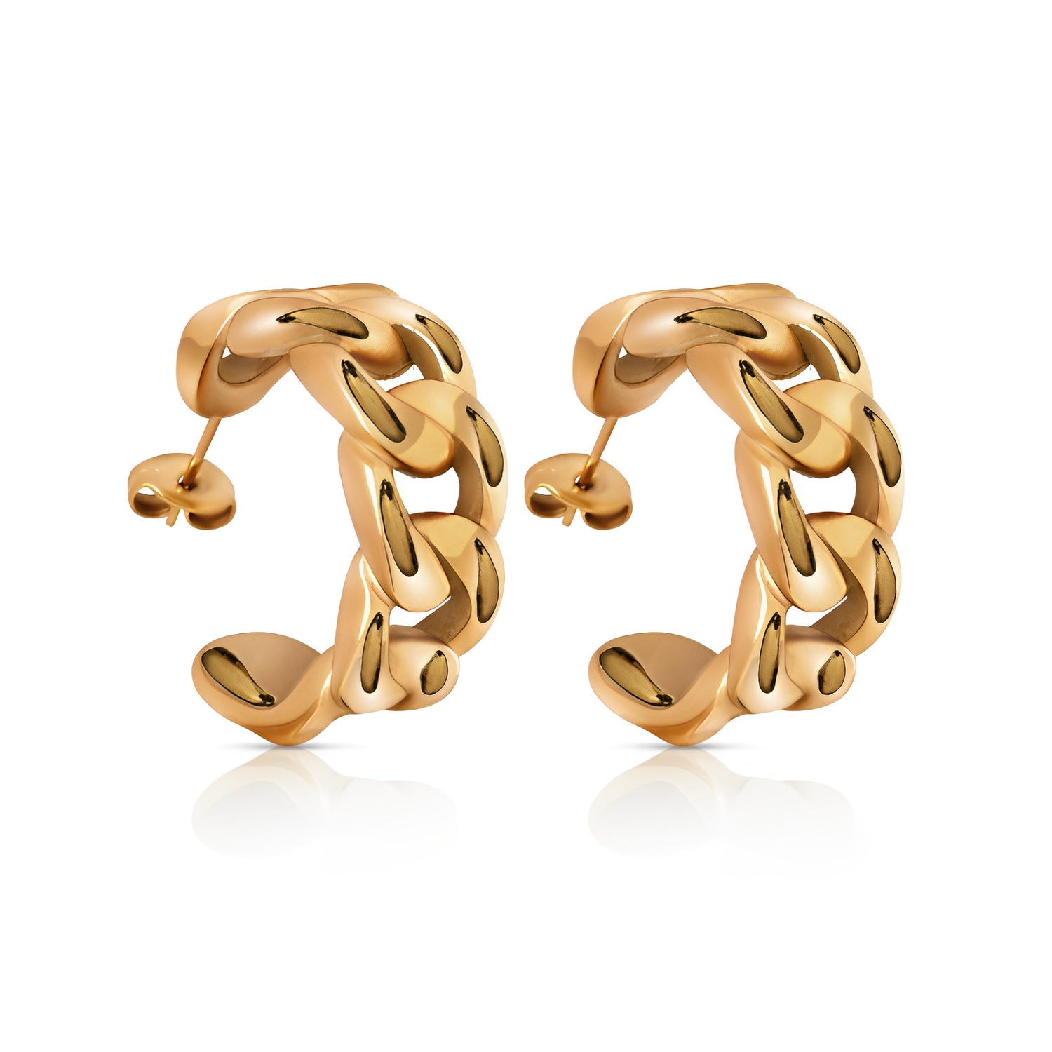 These hoops are hypoallergenic and waterproof, crafted with a chain-link silhouette.