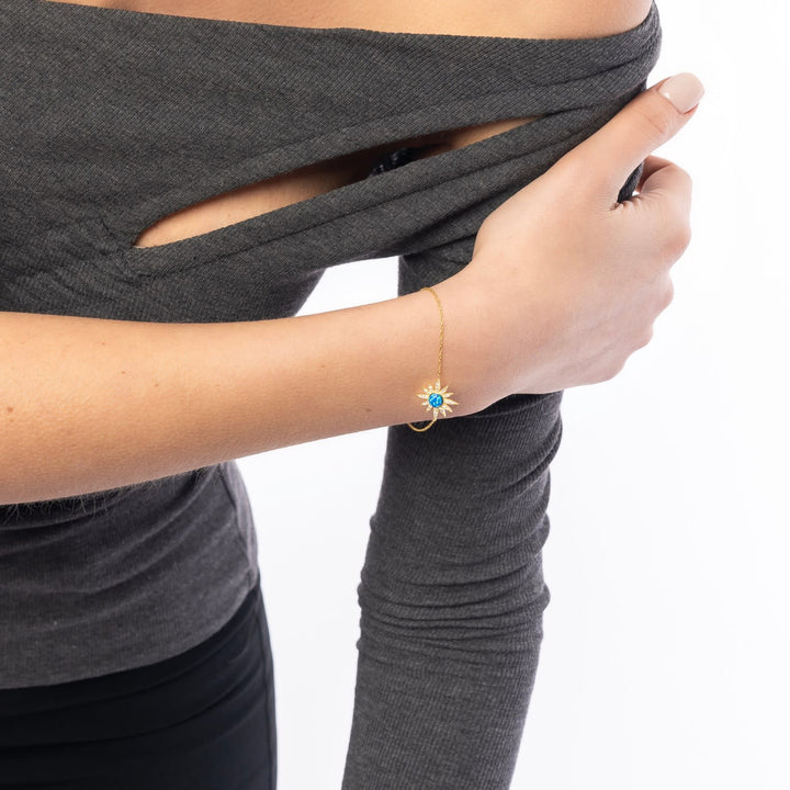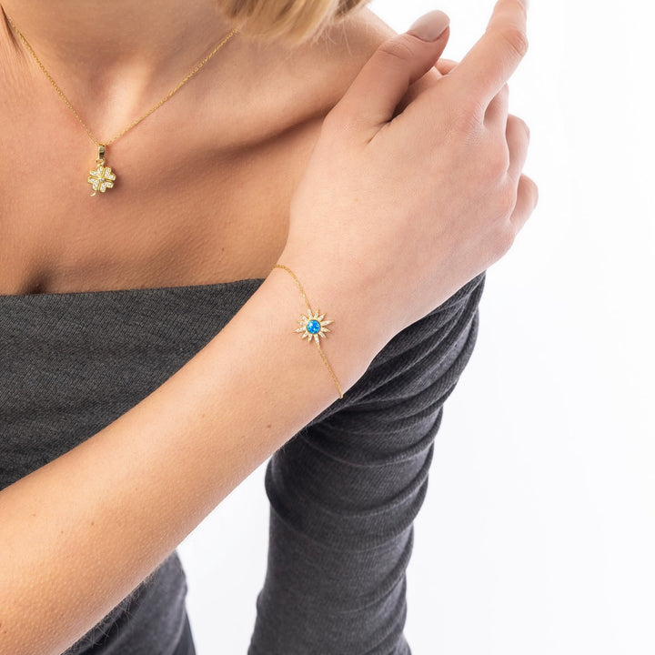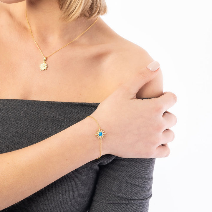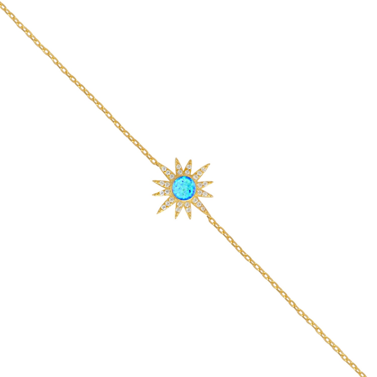 Blue Opal Sun Sterling Silver Bracelet - Gold