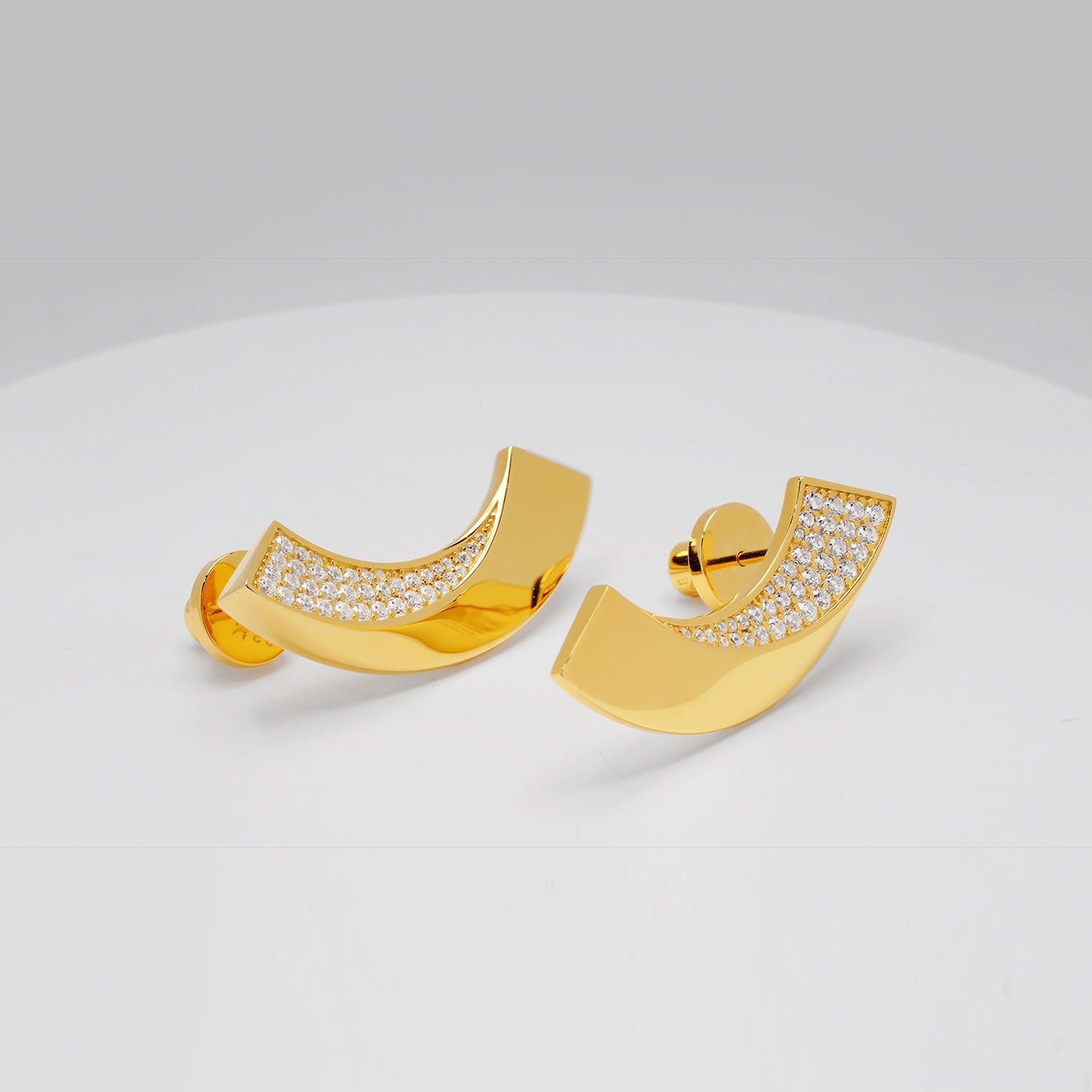 These Ribbon Drop Earrings by Meulien are a sculptural and sophisticated piece that merges elegant luxury with an artistic, cool vibe. The earrings are designed with gently curved surfaces that intertwine like ribbons, with the inner surface featuring pave-set clear cubic zirconia stones. The contrast between the highly polished metal and the sparkling stones creates a beautiful interplay of light and texture. These earrings are a perfect statement piece for those who appreciate a modern and luxurious aesthetic.