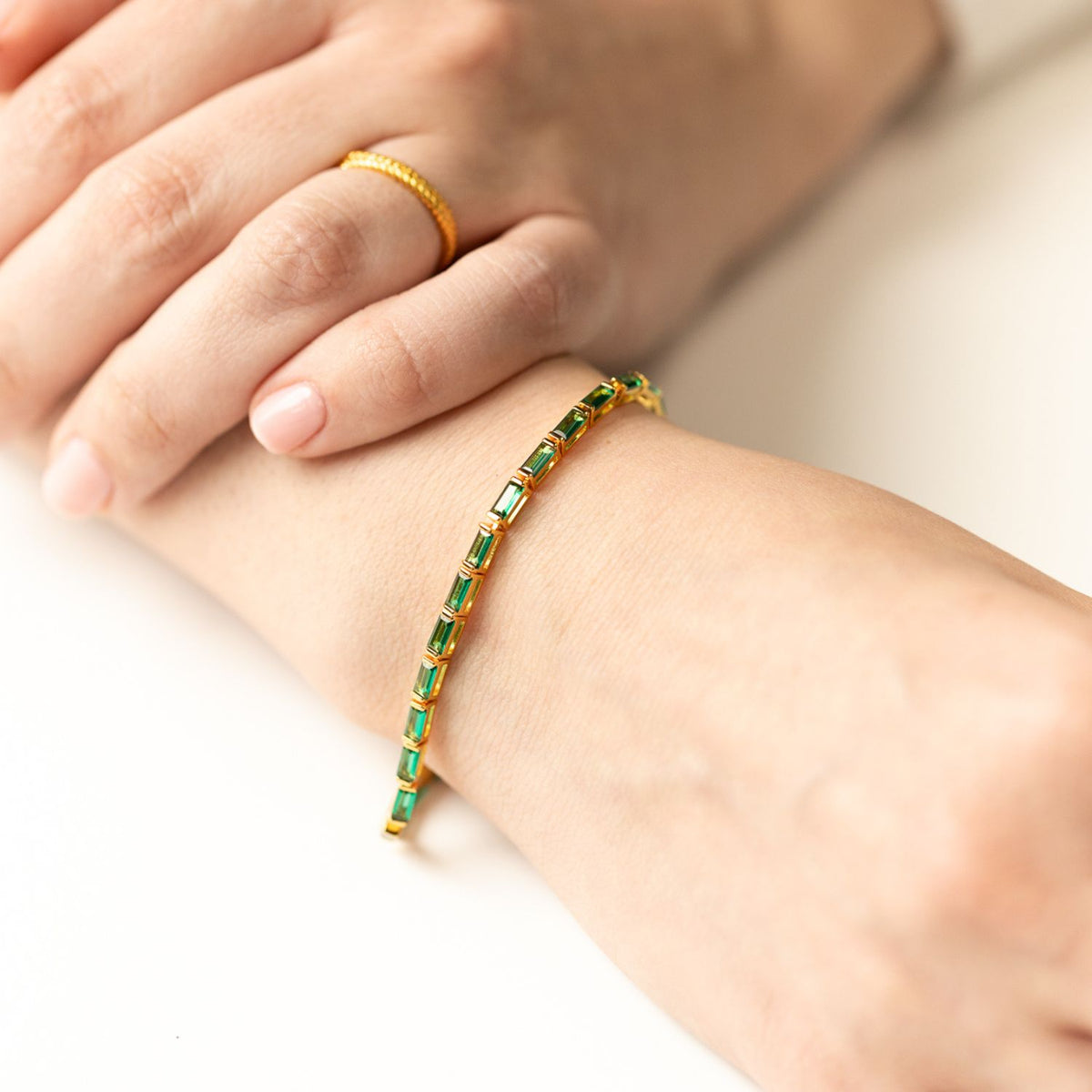 Bianca Baguette Emerald Tennis Bracelet