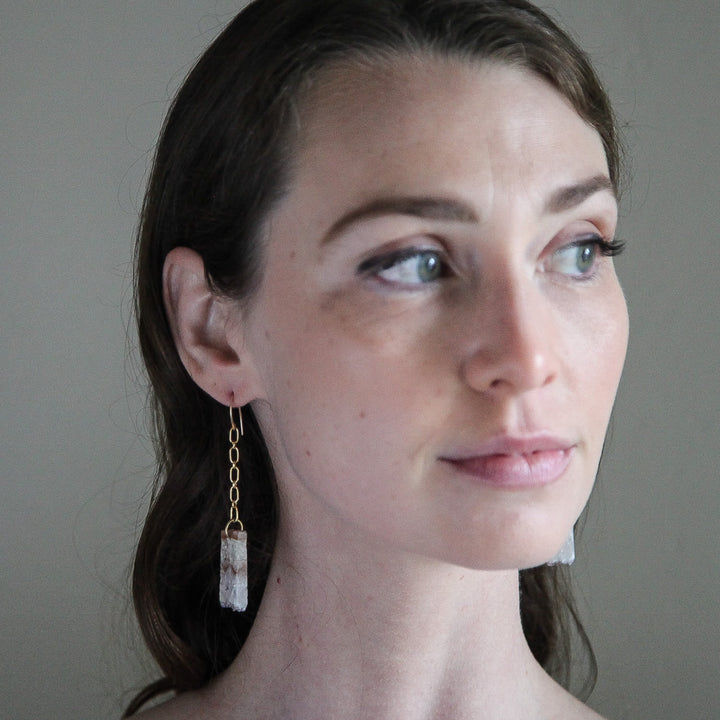 These Bohemian Amethyst Slice Earrings by Heather Hawkins Jewelry embody free-spirited elegance. Each pair showcases natural amethyst slices suspended from delicate gold-filled chains, capturing the raw beauty and individuality of the stone. With their long, fluid silhouette, they radiate boho charm and earthy sophistication, making them ideal for everyday wear or as a thoughtful gift for February birthdays.
