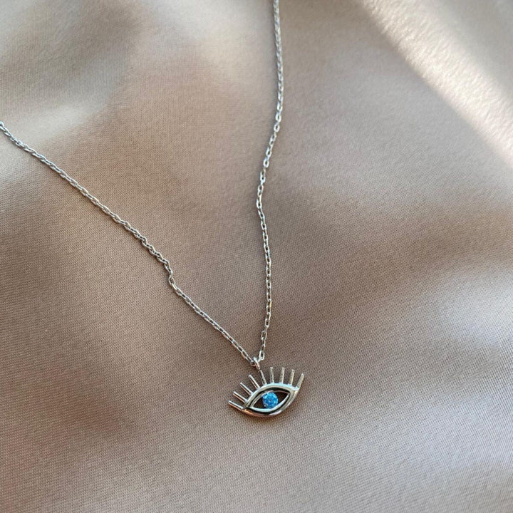 Aqua Blue Eye Evil Eye Sterling Silver Necklace - Silver