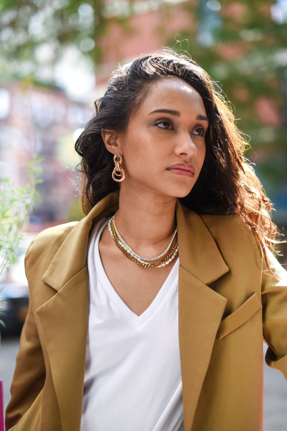 This Paris Vibes Choker by Adriana Pappas Designs is the perfect mix of classy and edgy. The combination of a chain and freshwater pearls creates a modern and sophisticated look. This handmade choker is adjustable, making it a comfortable and versatile piece for adding a touch of elegance to any outfit.