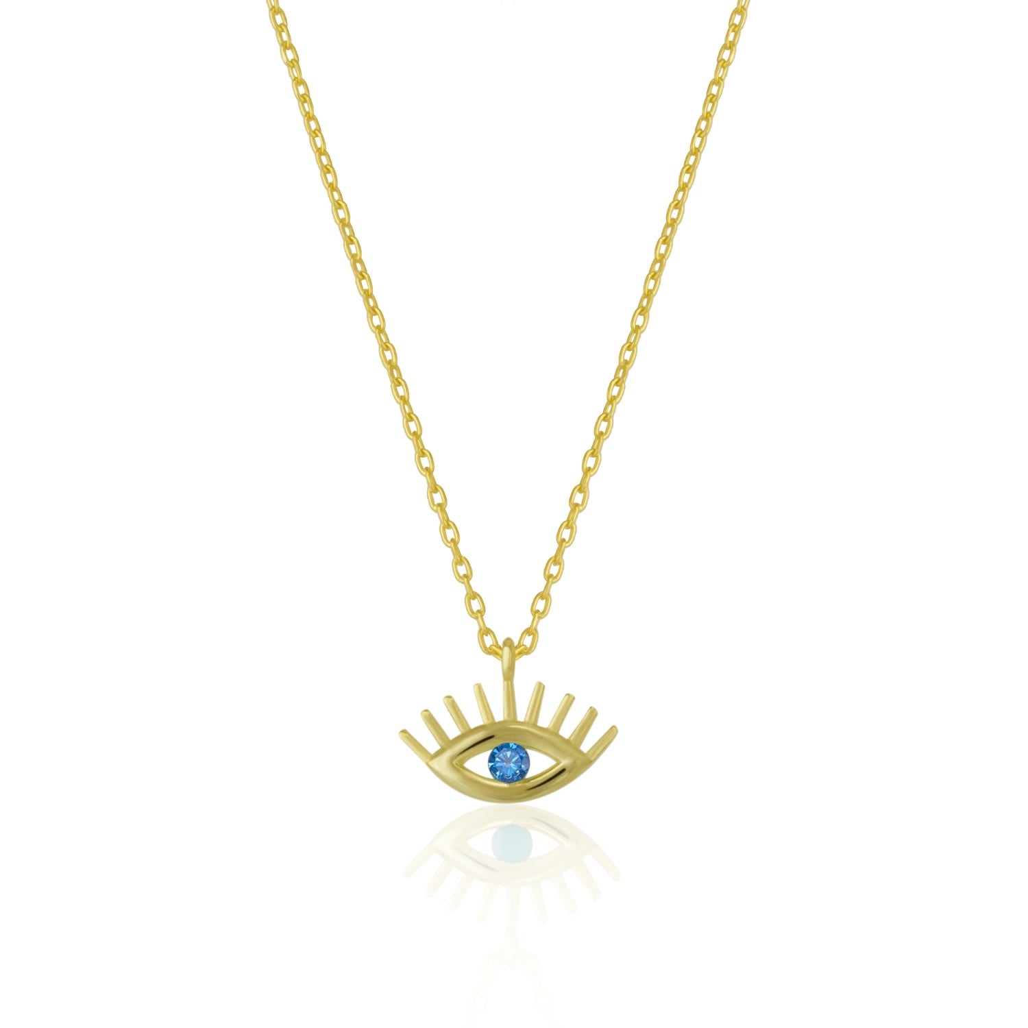 Aqua Blue Eye Evil Eye Sterling Silver Necklace - Gold