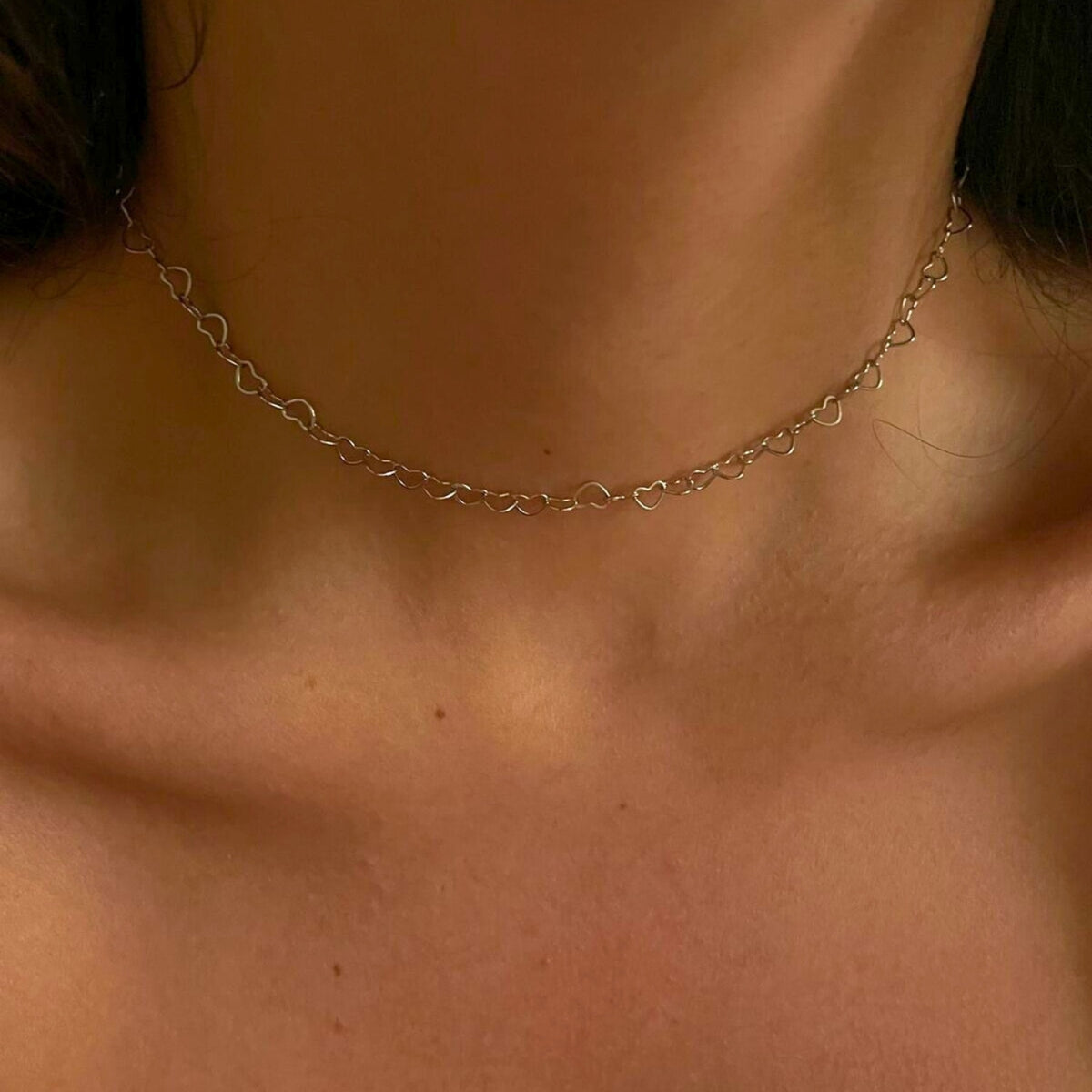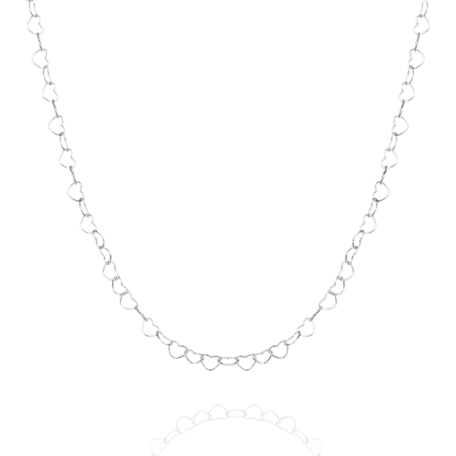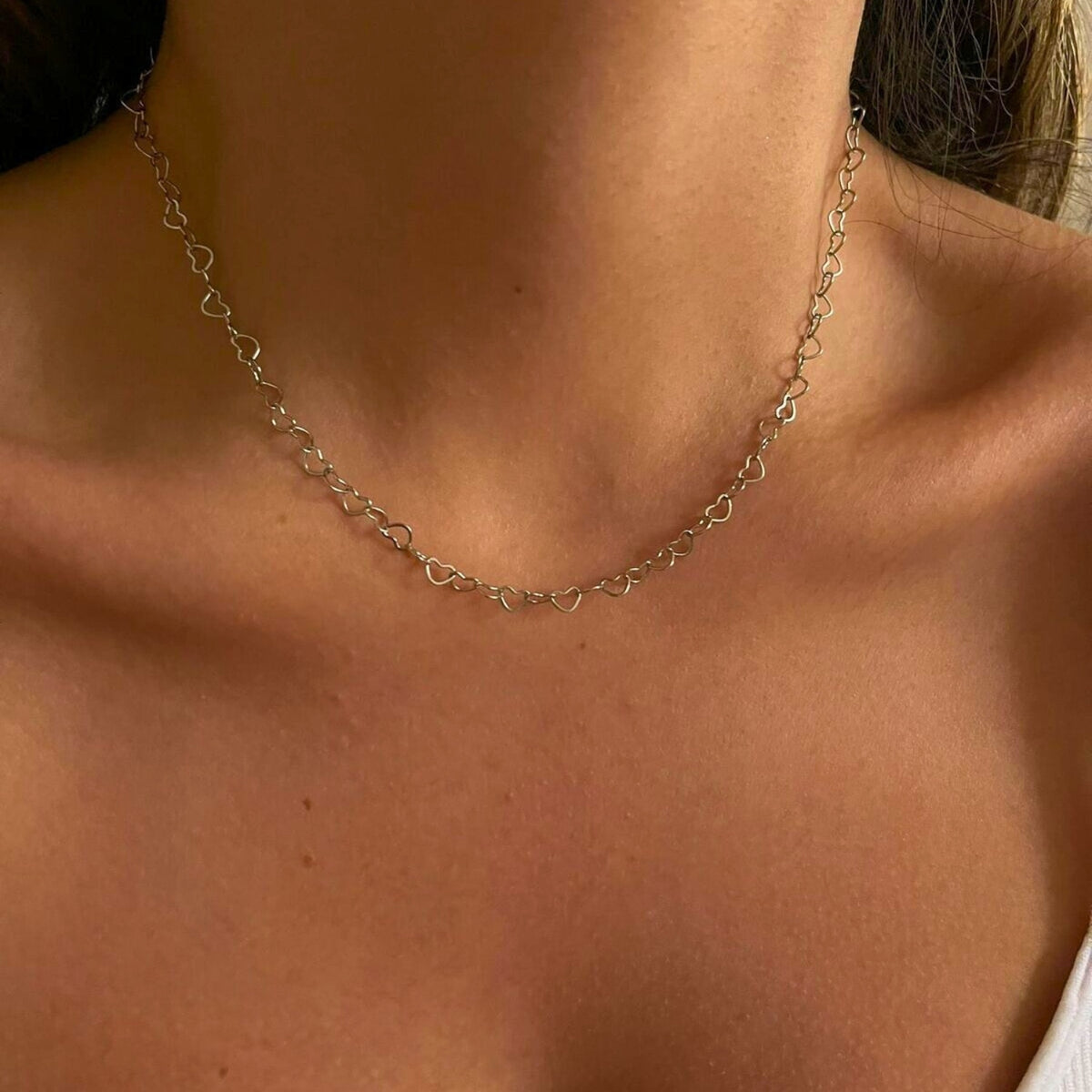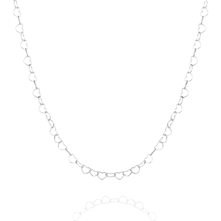 Love Heart Sterling Silver Chain Necklace - Silver