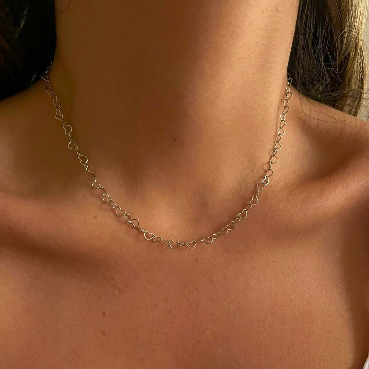 This Love Heart Sterling Silver Chain Necklace by Spero London is a unique yet pretty accessory that will make you stand out from the crowd. Designed in recycled 925 sterling silver, it features dainty hearts linking together to form a gorgeous chain. This romantic necklace is a perfect expression of love and can be worn for any occasion, from casual to formal.