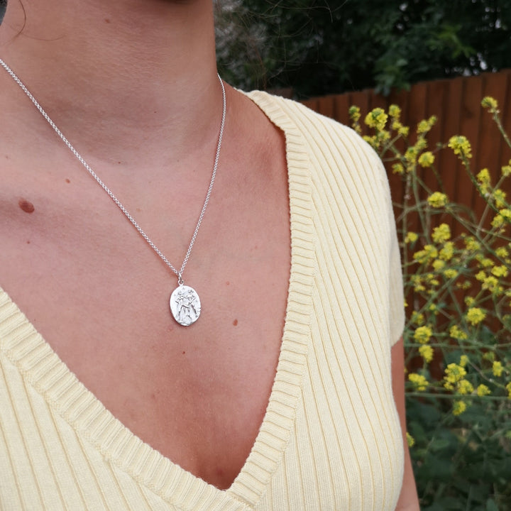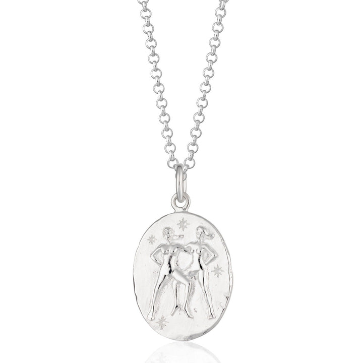 This Silver Gemini Zodiac Charm Necklace by Scream Pretty is a stunning and meaningful accessory. It is ideal for those with the Gemini star sign, born between May 21st and June 21st. The pendant is crafted from recycled sterling silver and features stunning detailing of two twinned figures that align with the Gemini's constellation. It is an eye-catching celestial medallion that is hypoallergenic and free from lead and nickel.