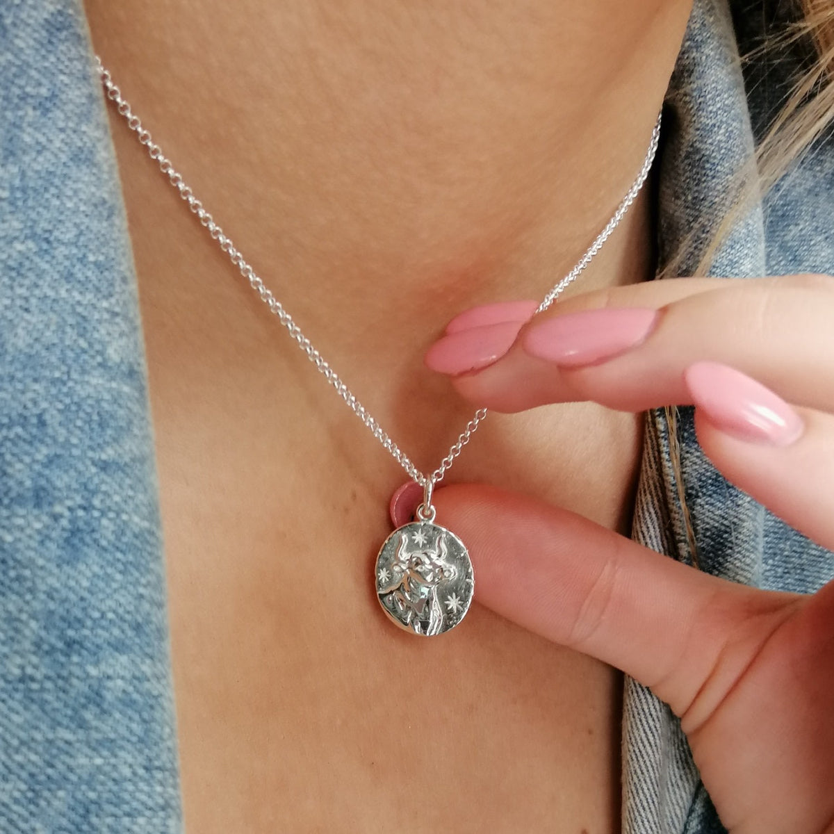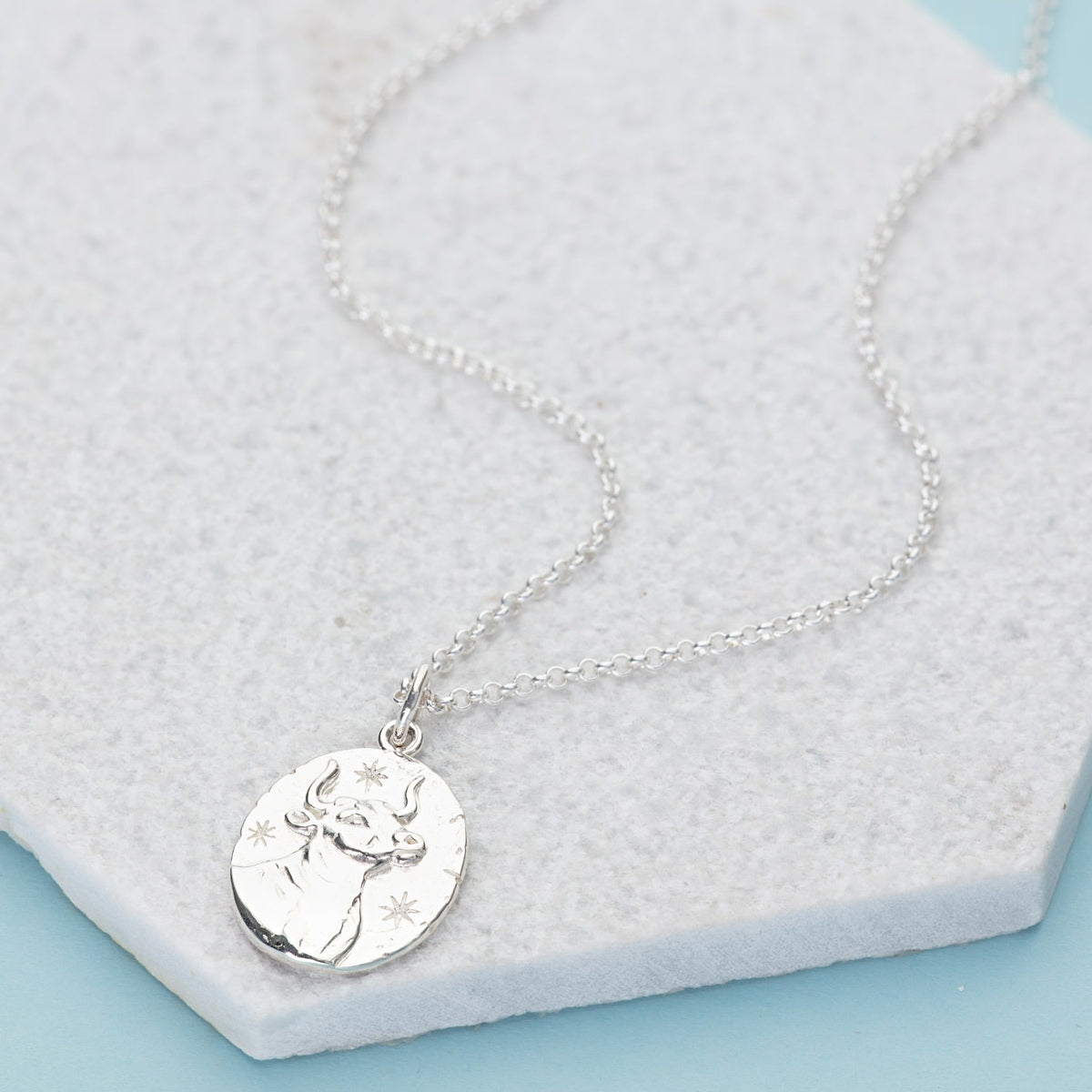 Silver Taurus Zodiac Charm Necklace