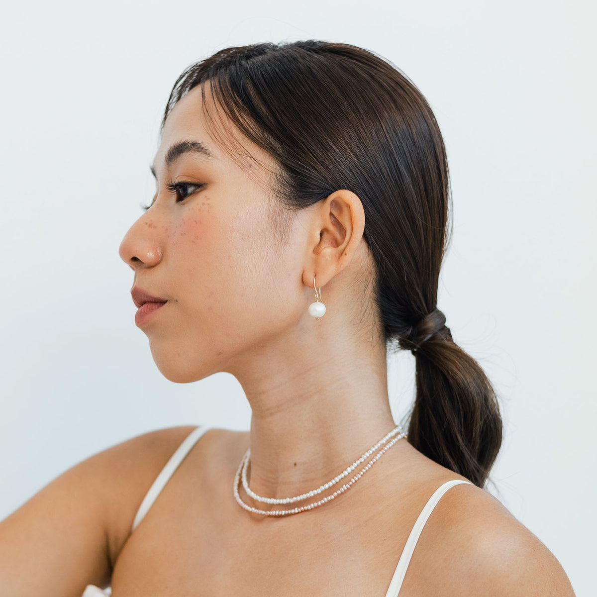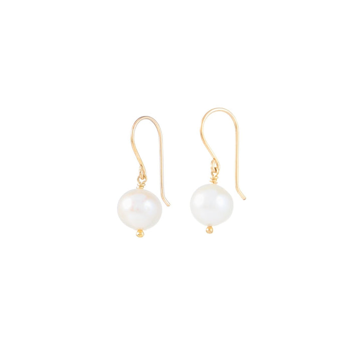 These earrings are crafted from 14k gold-filled material, which is hypoallergenic and tarnish-resistant. They feature high-lustre freshwater pearls.