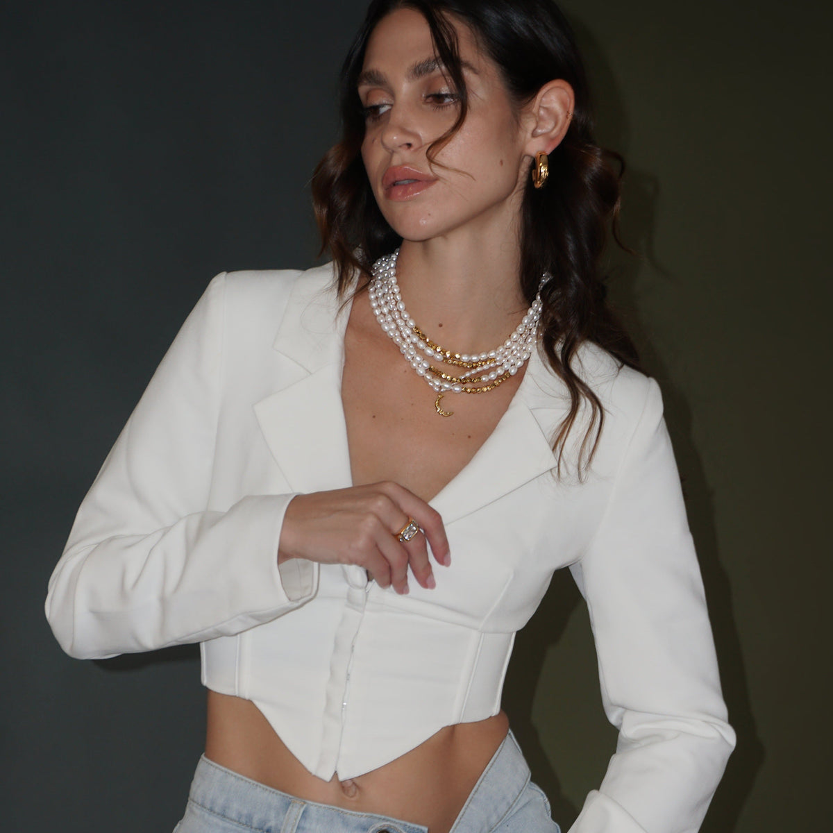 This Lucky Pearls + Gold Beaded Necklace by Mg Jewelry is a beautiful combination of natural elegance and modern design. The genuine freshwater pearls symbolize purity and harmony, while the geometric gold beads add a contemporary, stylish touch. This handcrafted piece is water-resistant, sweat-proof, and hypoallergenic, making it a durable and versatile accessory that can be worn for any activity. It’s a true labor of love and a perfect finishing touch.
