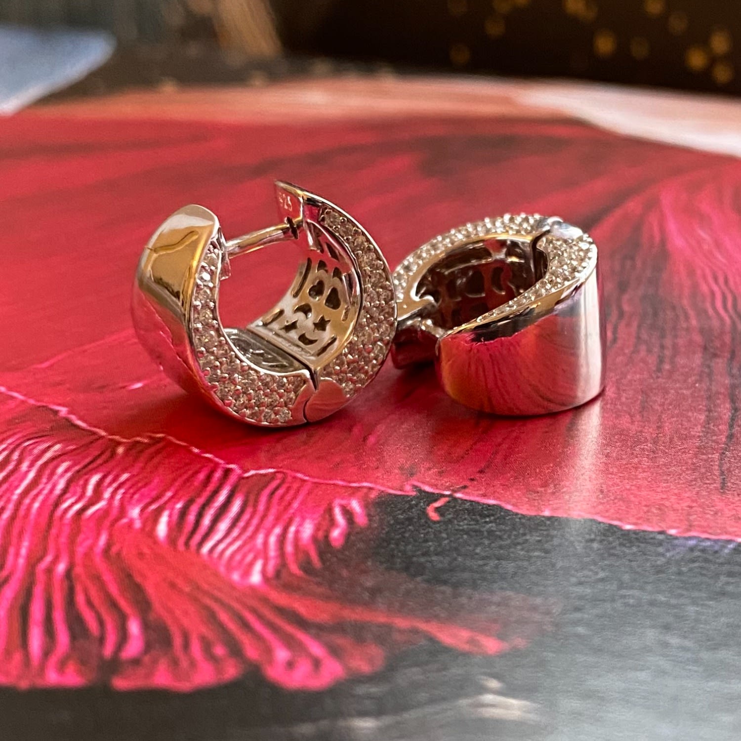 These handcrafted loop earrings are made from 18k gold-plated silver and are set with Swarovski stones.