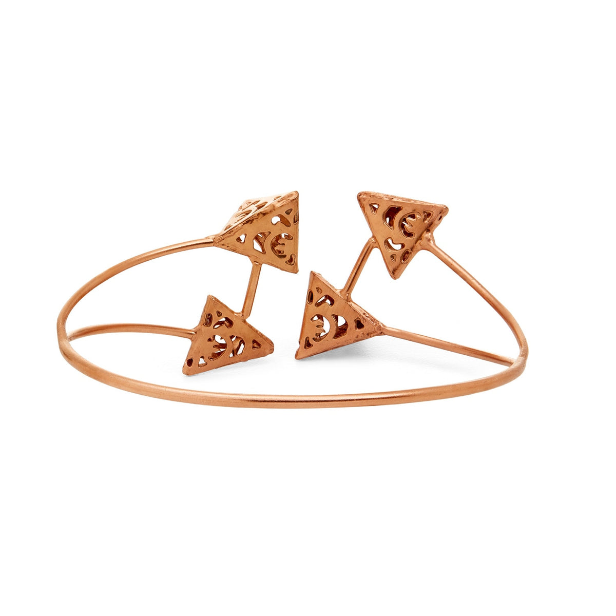 This adjustable cuff is handcrafted from recycled brass and finished with 22k rose gold plating.