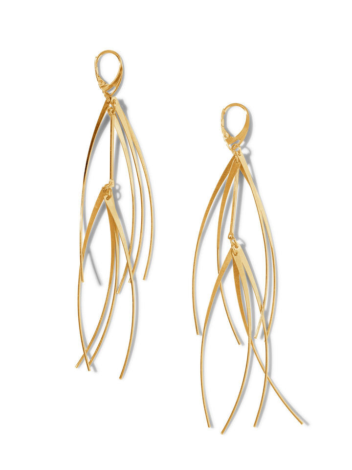 These Gold Short Tinsel Earrings by Jaredjamin are a delicate and captivating accessory. Their tinsel-like design creates a 5-inch "shower of sparks" that elongates the neck. With secure lever-back fastenings and a lightweight feel, they provide effortless movement and a fascinating sparkle that will charm friends and onlookers.
