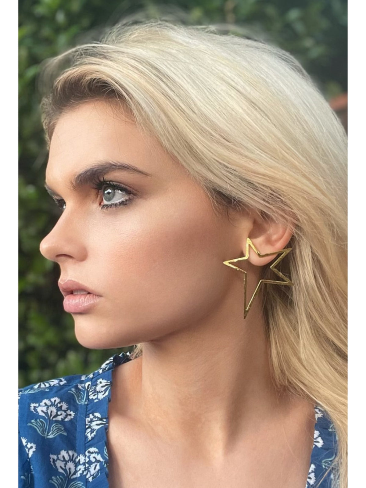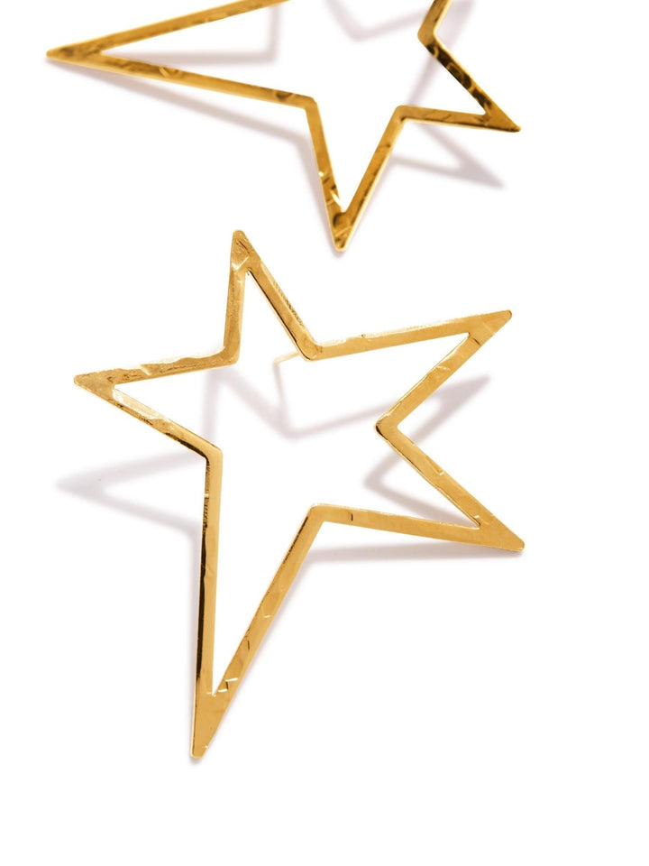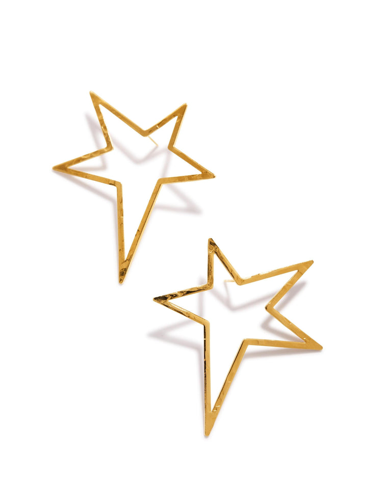 These post earrings are plated in 18K gold and feature a lightweight star silhouette with a signature textured finish. The earrings measure approximately 2 inches (5cm). They should be cleaned with a soft, water-dampened cloth and dried completely.