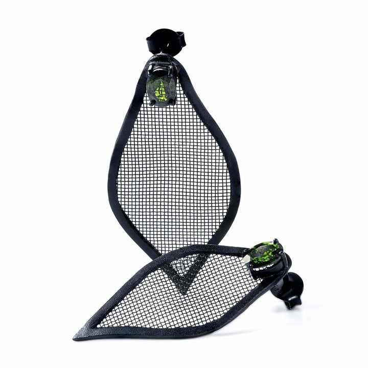 Liora Asymmetric Leaf-Shaped Silver & Titanium Mesh Earrings With Chrome Diopside