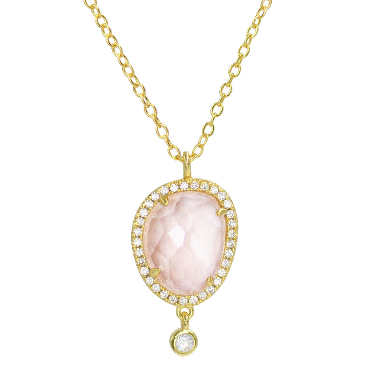 14k gold-plated over 925 sterling silver. Lab-created morganite-colored gemstone with surrounding pave crystals. Adjustable silicon slider clasp, length up to 46cm.
