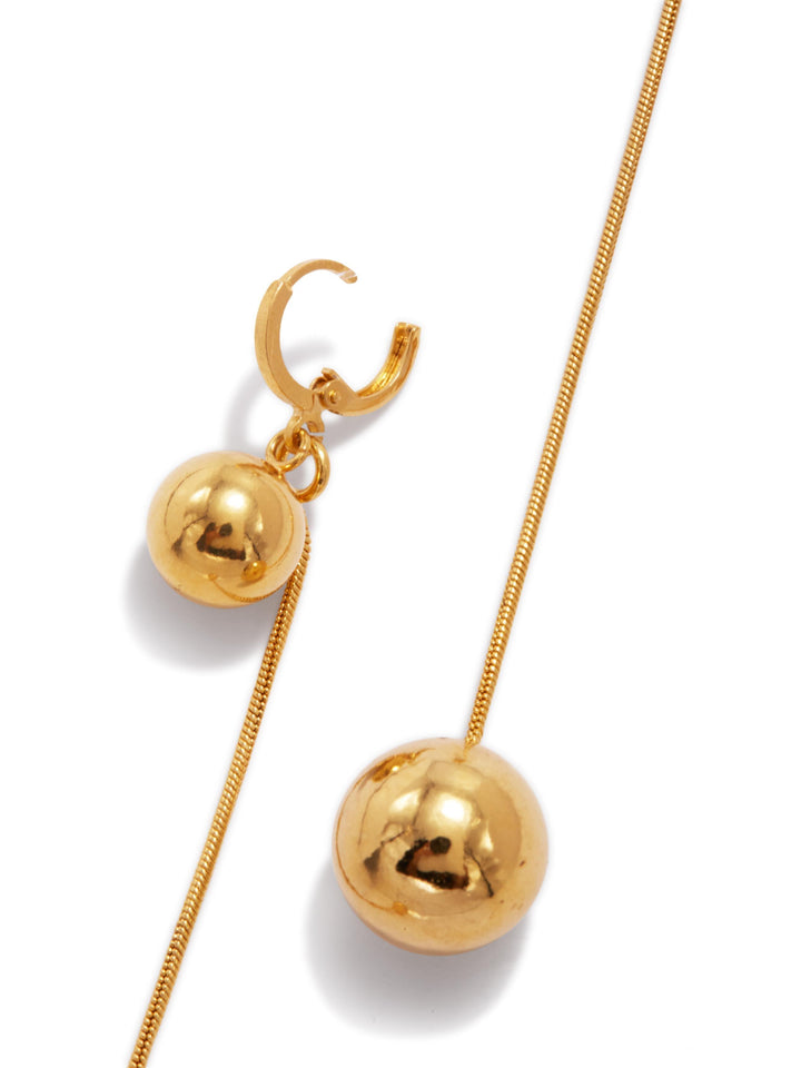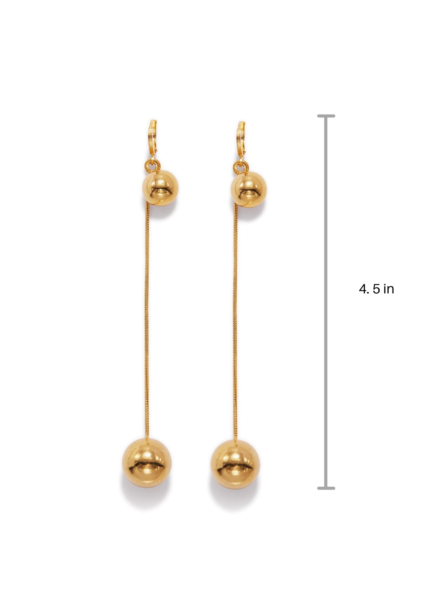 These Gold Orbita Swing Hook Earrings by Jaredjamin are a sweet and elegant accessory. The golden, maraschino cherry-like orbs swing from gold-plated hooks, bringing a playful and charming touch to any look. The plated pieces are sealed with a protective clear E-coating, ensuring their longevity and shine. They are perfect for adding a touch of fun and sparkle.