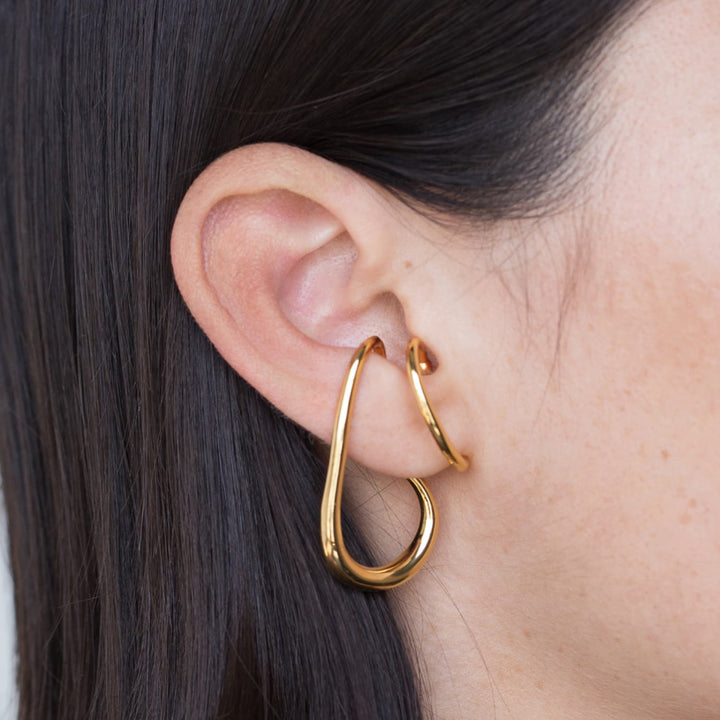 The London Ear Cuff is a striking, postless earring that creates a dramatic and modern statement. Its bold, curling form is designed to hug the earlobe, offering a unique and elegant look without the need for a piercing. Lightweight and comfortable for all-day wear, this cuff is the perfect accessory to add a touch of modern elegance to any outfit. It's a versatile piece that comes as a pair and is available in both gold and silver tones.