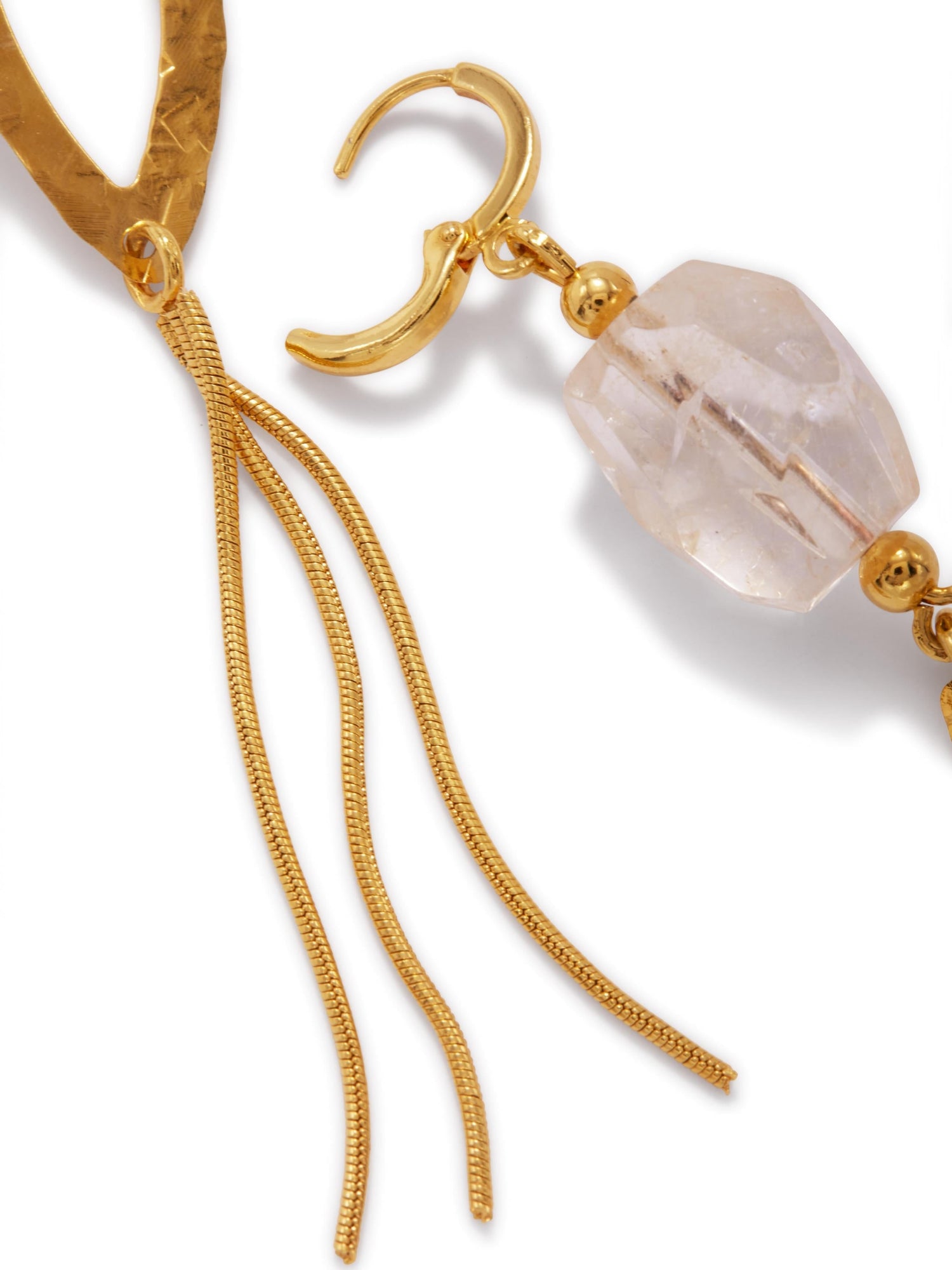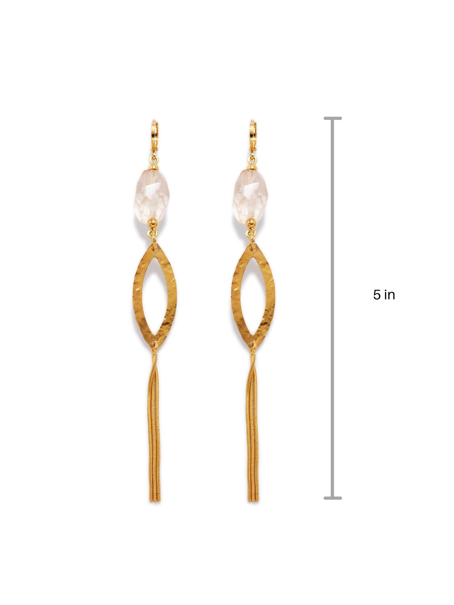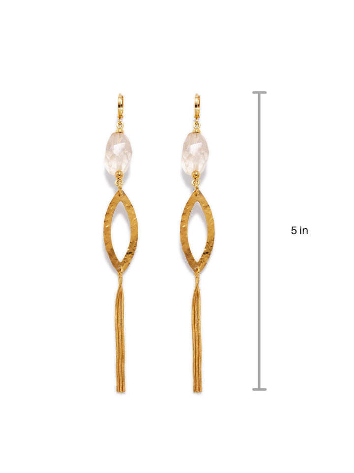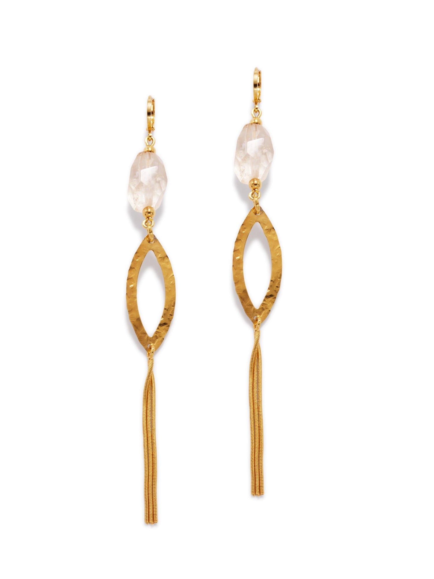18k gold plating with protective seal. Faceted citrine stones. Hammered eyelet tassel design. Lever-back fastening. Length approx. 5 inches.