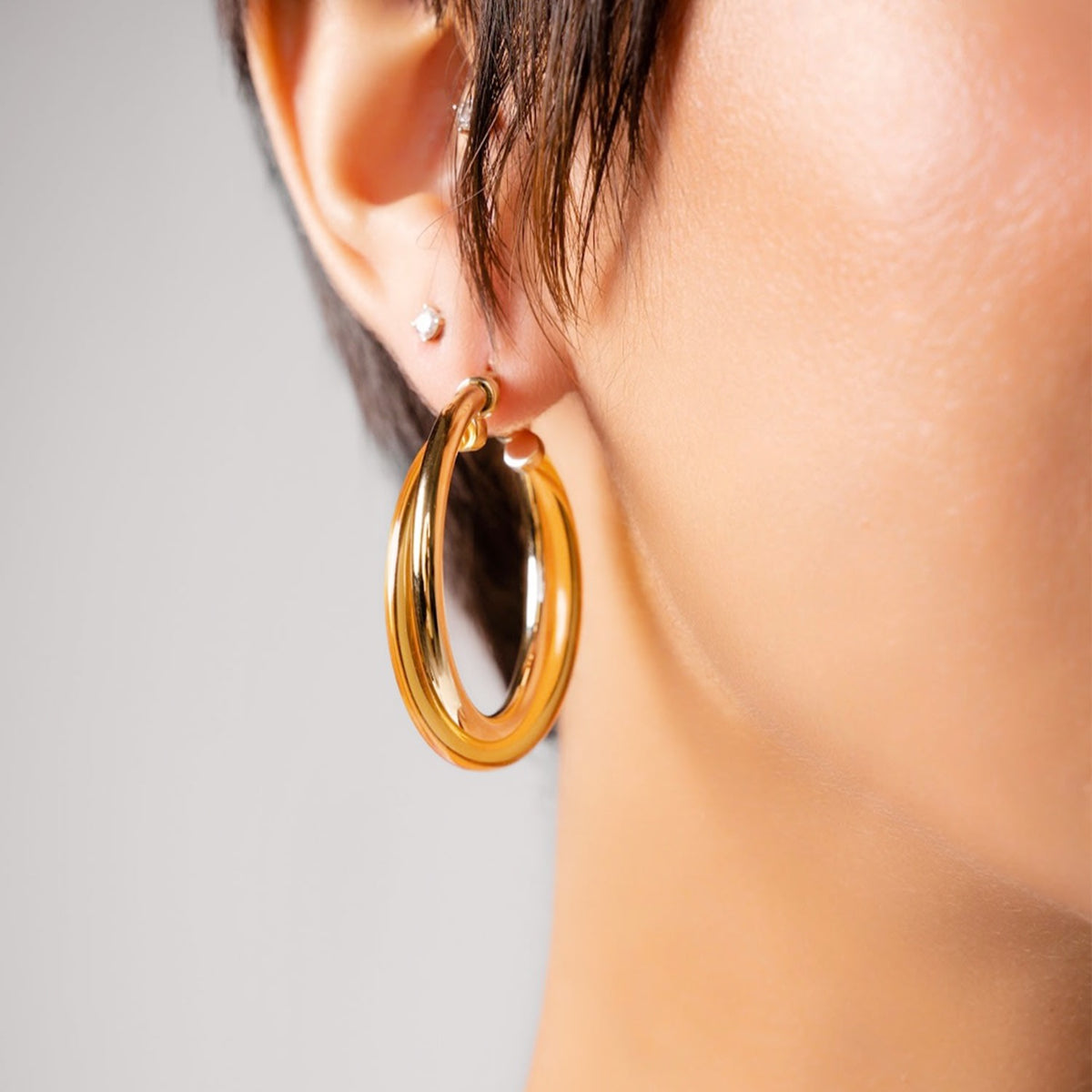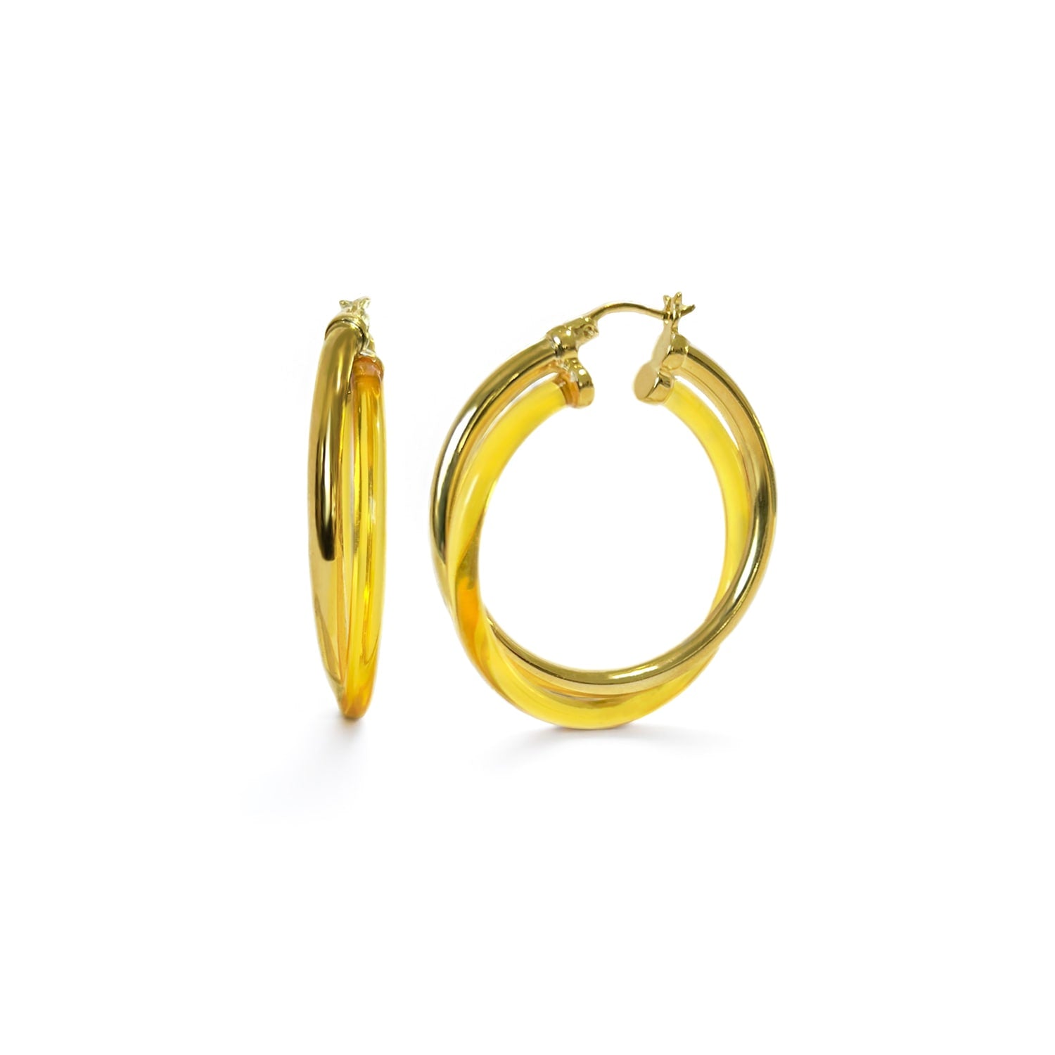 These Crossover Hoops In Honey by Gold & Honey are a classic with a modern update. The crossover design is timeless, while the contrasting lucite makes these earrings unique and stand out. They are a versatile piece that can be paired with a casual look or dressed up for a special occasion. As a handcrafted accessory, these earrings offer a unique style with a lightweight feel, adding a touch of contemporary flair to any outfit.