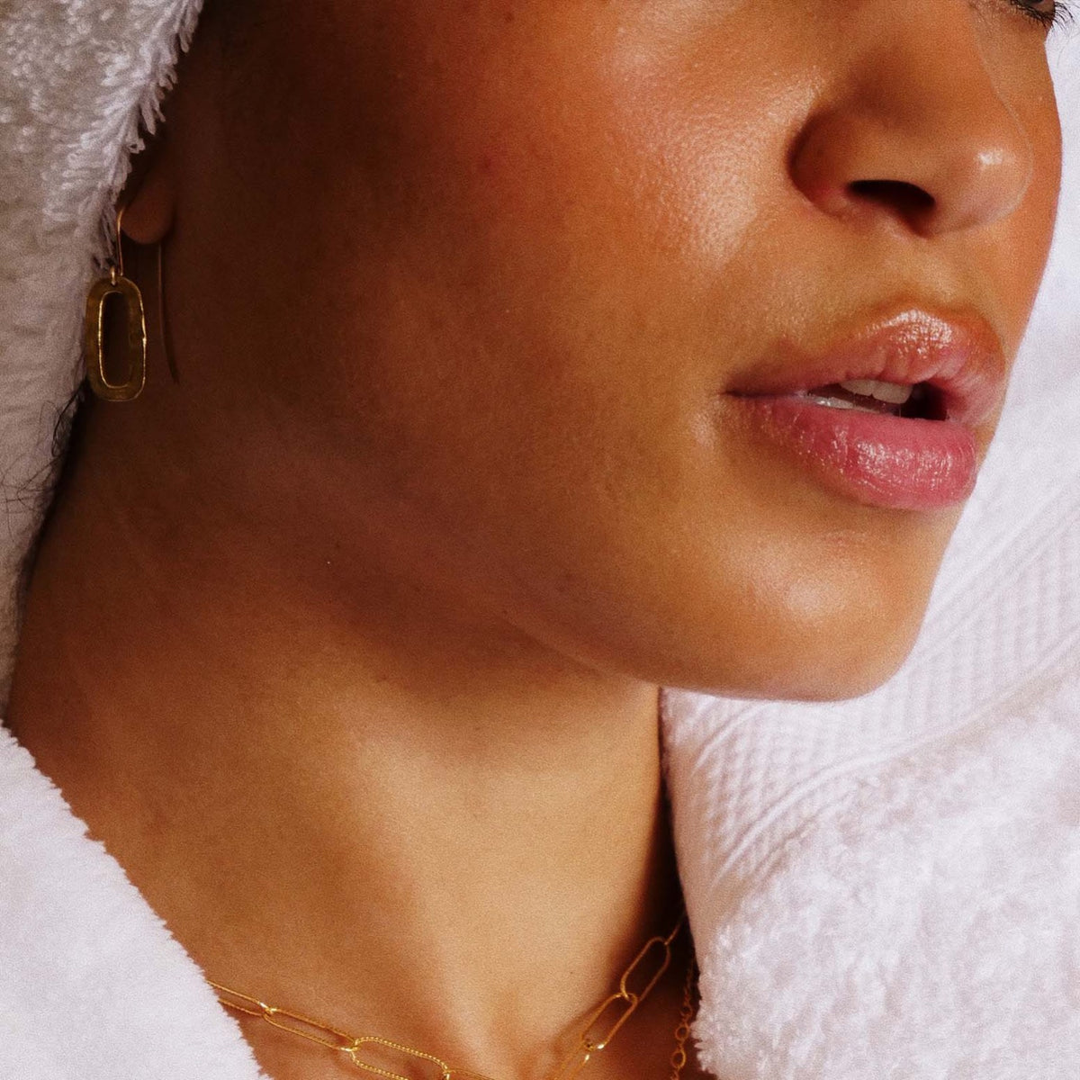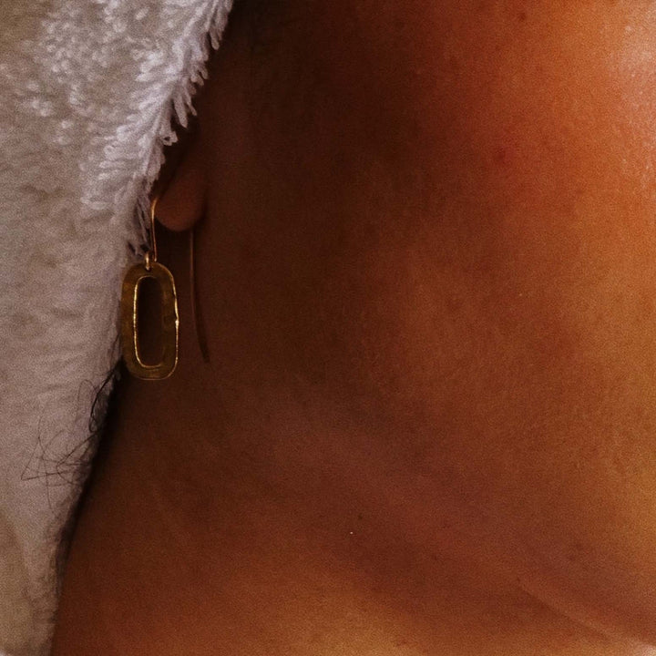 These Hatton Forge Brass Drop Earrings by N'damus London are a petite, beautiful, and timeless accessory. Handmade in London from ethically sourced recycled brass, each piece features a unique hammered design, giving it an artisanal touch. The 12K gold ear wires provide a secure and elegant finish. These earrings are perfect for subtly enhancing any casual outfit or adding a touch of style and class to your evening ensemble.