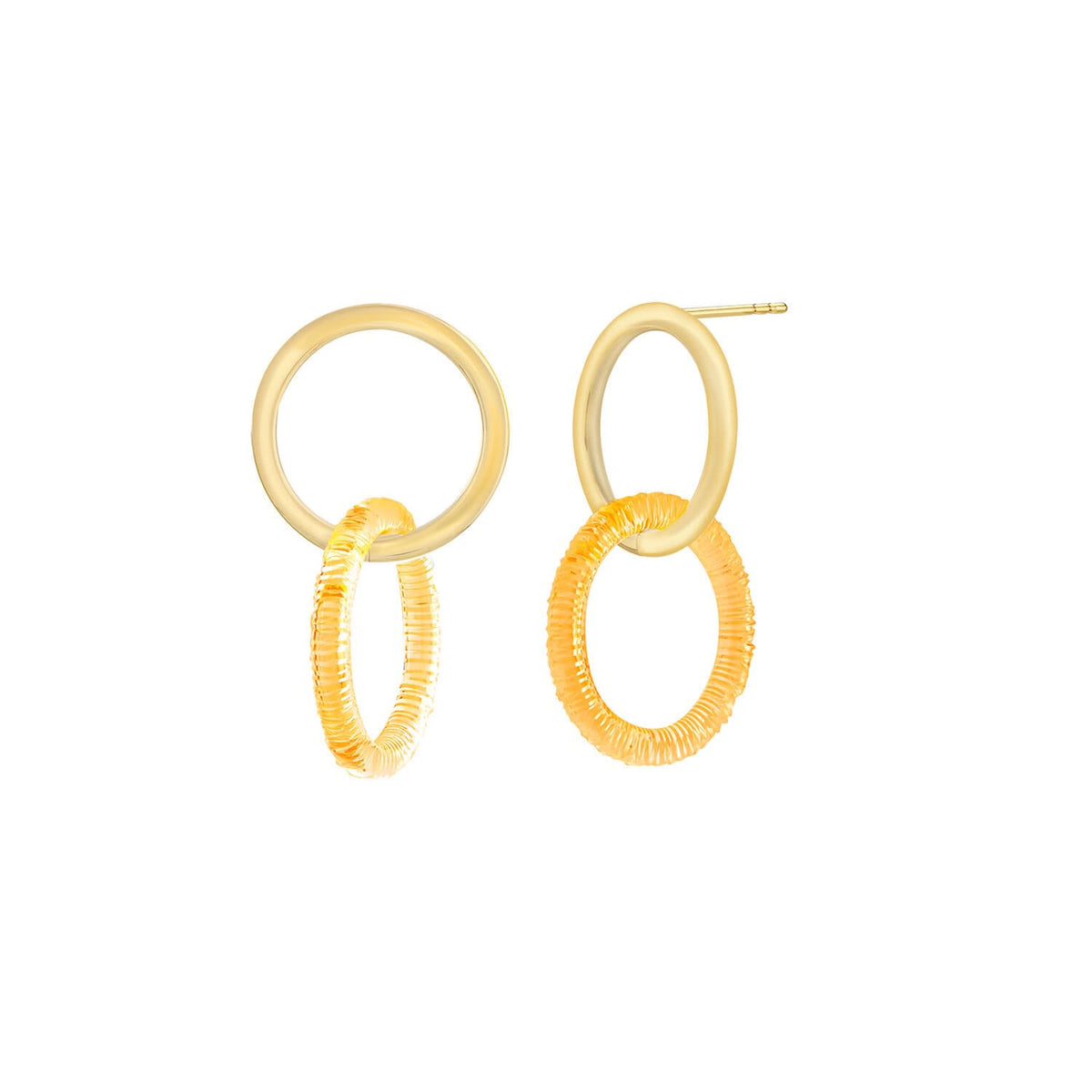 The Double Drop Earrings In Honey by Gold & Honey are a classic drop and dangle earring with a modern twist. The design features a stud earring for a secure fit, while a honey-colored lucite disc hangs below, sparkling with a diamond-cut finish. These are statement earrings that blend class with fashion, perfect for adding a touch of glamour to your next video call or in-person appearance. The lightweight lucite makes them comfortable for all-day wear.