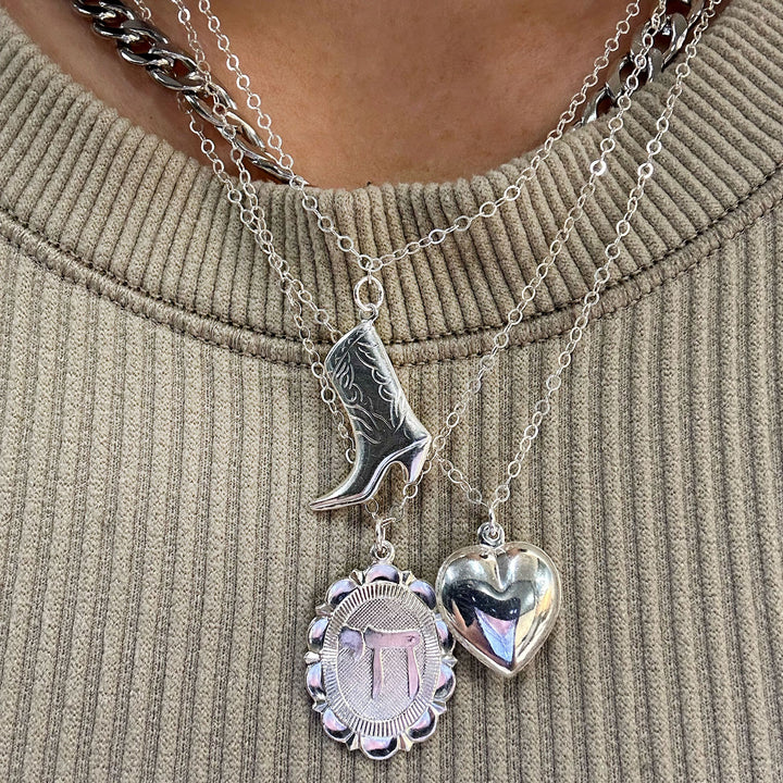 Silver Puffed Heart Charm Necklace Love Valentines Day Pendant Chain