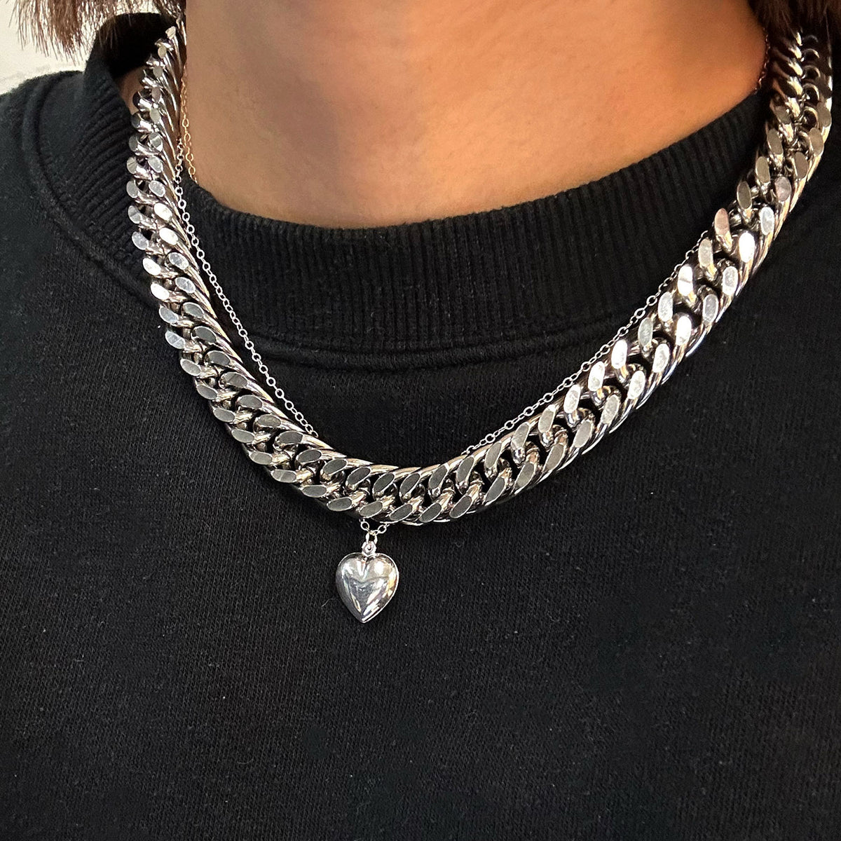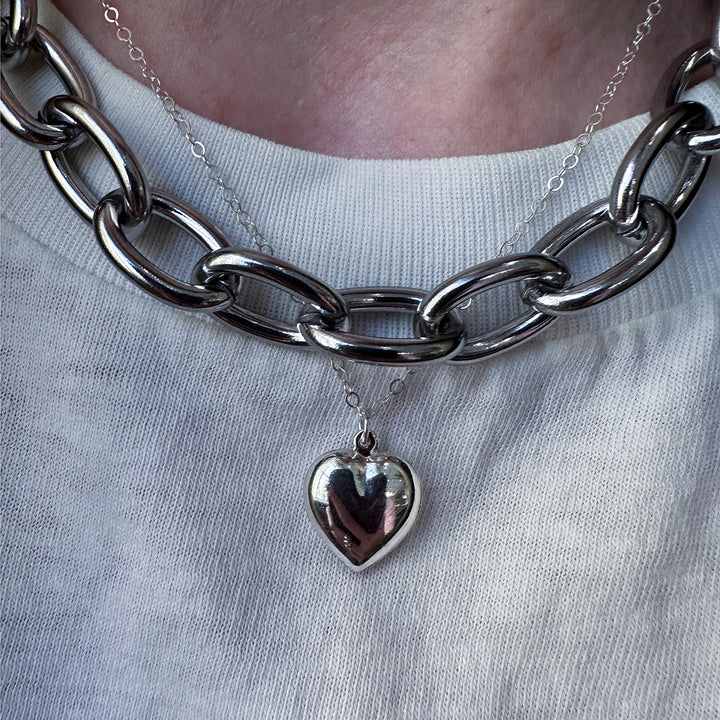 This necklace is crafted from high-quality 925 sterling silver with a highly polished finish and features a three-dimensional puffed heart charm.