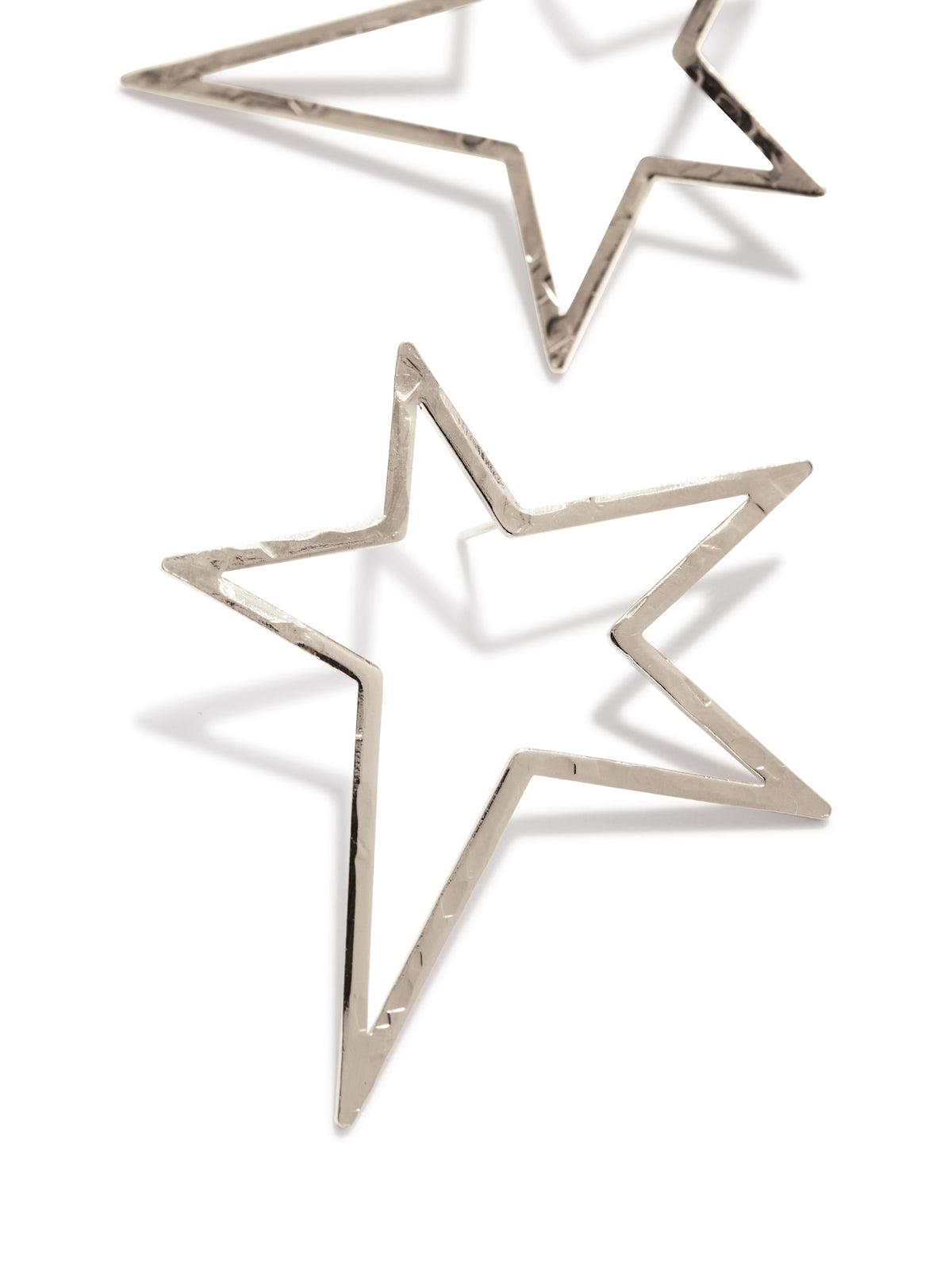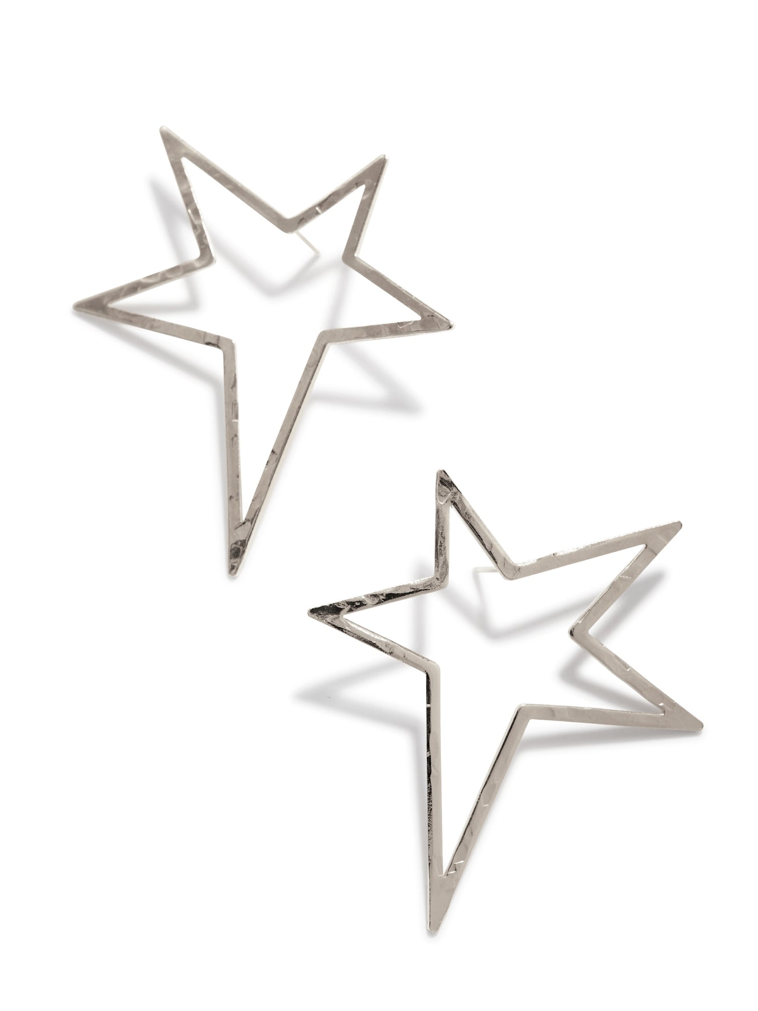 These post earrings are plated in silver and feature a lightweight star silhouette with a signature textured finish. The earrings measure approximately 2 inches (5cm). They should be cleaned with a soft, water-dampened cloth and dried completely.