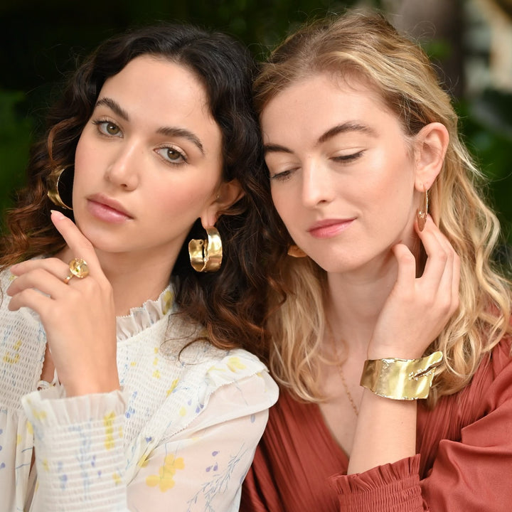 This Wabi-Sabi Wanderer Statement Cuff Bracelet by Rare Matters Jewelry is a bold yet understated piece that celebrates the beauty of imperfection. Inspired by the Japanese aesthetic of wabi-sabi, its flowing, organic form wraps the wrist effortlessly, combining comfort and unique style. This cuff is perfect for those who find elegance in nature's design and appreciate a timeless accessory that is both a bold statement and a subtle nod to artistic simplicity.
