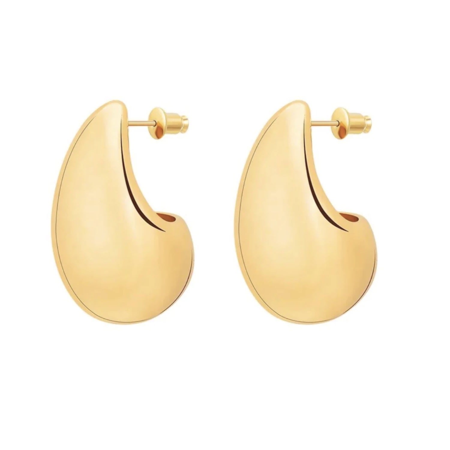 These Celine Rain Drop Earrings by Arella are a must-have accessory for a sleek and reflective look. The signature tear/raindrop shape adds a statement of modern style that can be paired with a simple t-shirt or a little black dress. Inspired by fashionistas like Hailey Bieber and Kylie Jenner, these 14k gold-filled earrings are a chic and glamorous addition to any wardrobe, offering a touch of effortless sophistication.