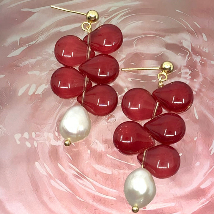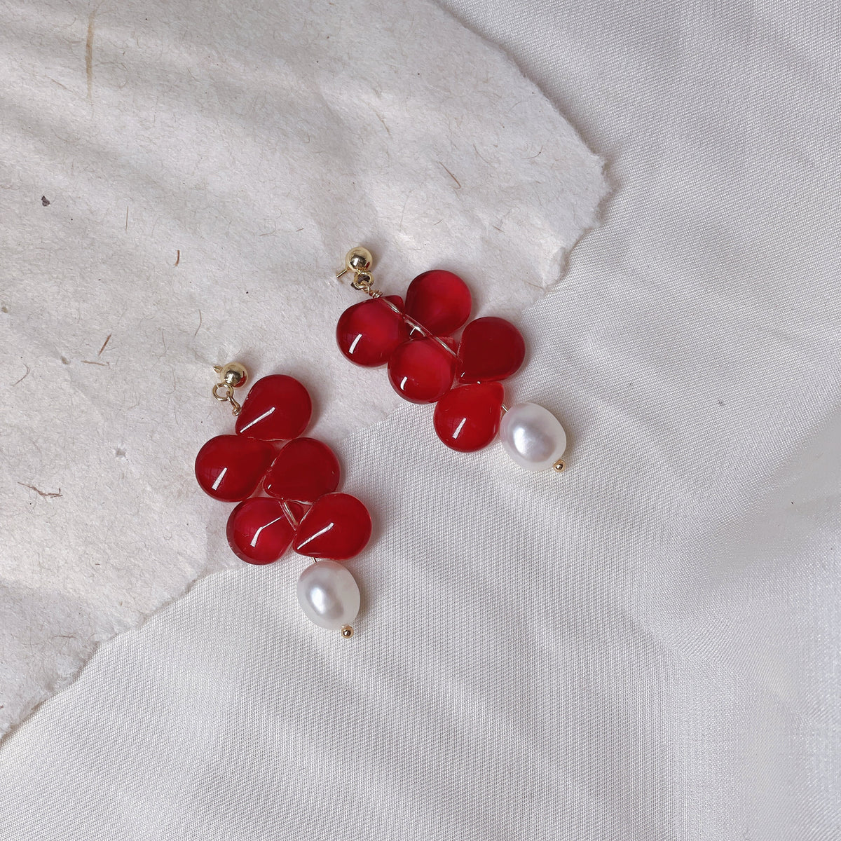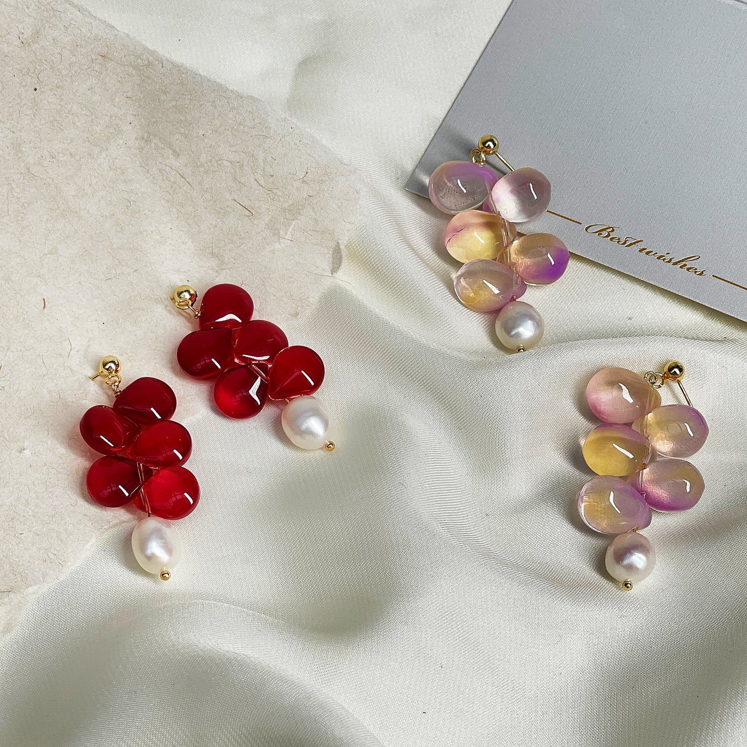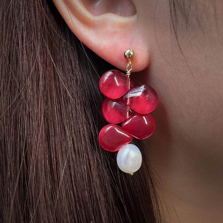 These Scarlet Grape Cluster Pearls Earrings by Ninemoo offer a poetic and artistic expression for those who appreciate unique adornments. Meticulously handcrafted in London, their design evokes a sense of tranquil beauty, as if plucked from a whimsical garden. The delicate clusters of natural pearls and glass beads create a soft, graceful movement that adds a touch of sophisticated charm. They are a timeless accessory that brings a subtle yet profound elegance to any look, symbolizing the quiet beauty found in nature.