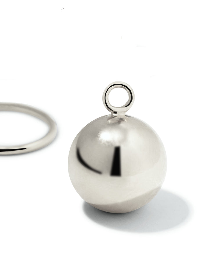 These Silver Orbita Ball Charm Click-Top Hoop Earrings by Jaredjamin offer sleek versatility. With detachable orb charms dangling from polished hoops, they allow two distinct looks—bold with charms or refined without. A modern must-have for elegant, adaptable styling.