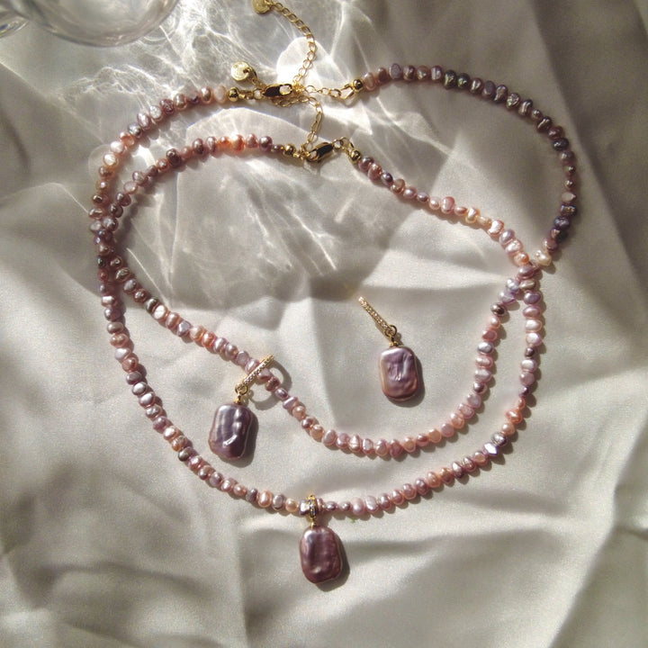 Rectangular Pink Baroque Pearl Necklace