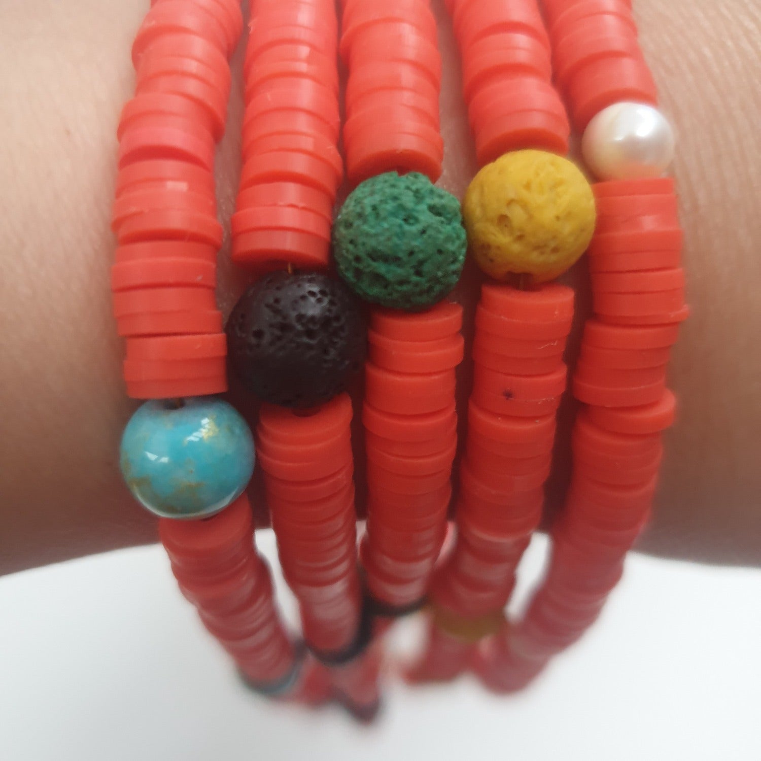 Unisex Beaded Summer Necklace – Orange Polymer With Green Lava Beads