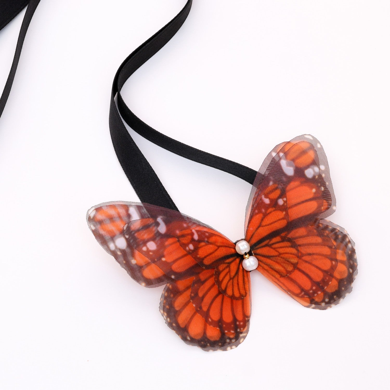 Monarch Butterfly Ribbon Tie Choker Necklace Black Ribbon