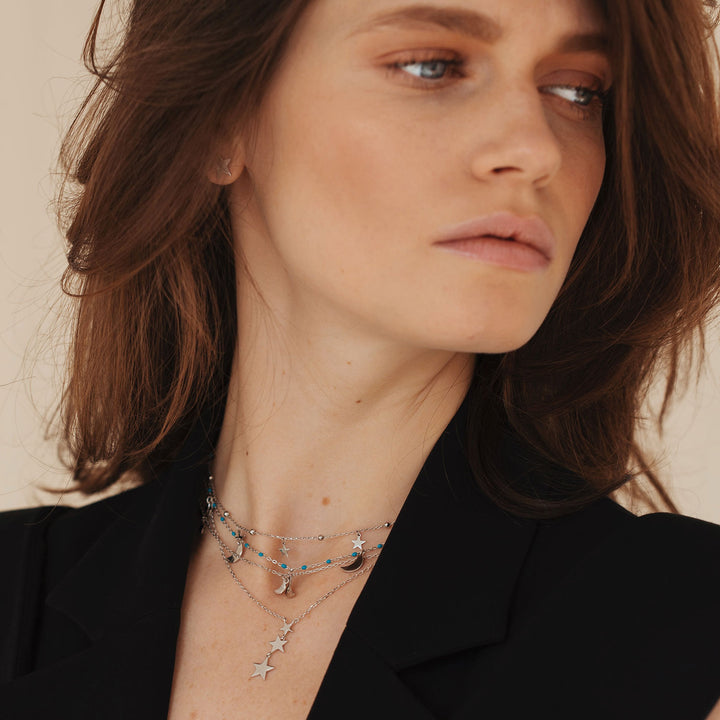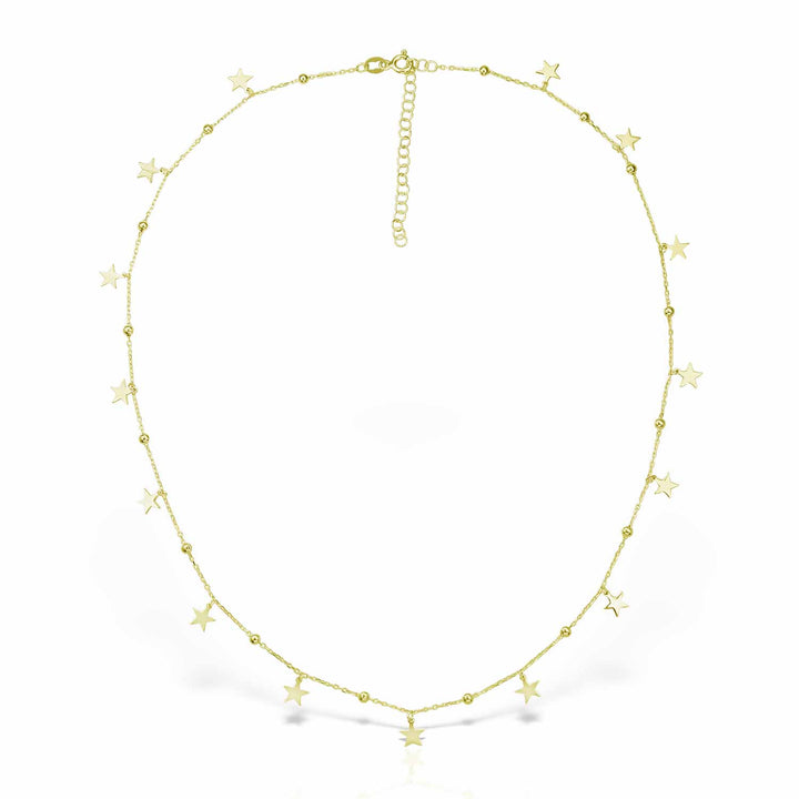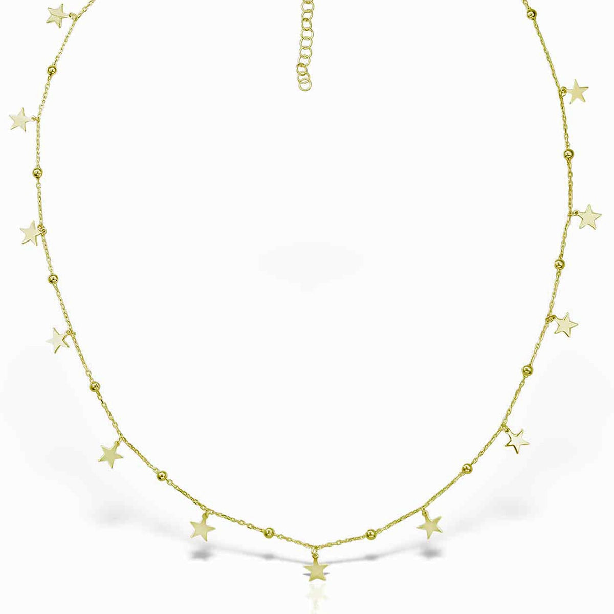 This choker is made from 18K Gold Plated Sterling Silver and is adorned with small star charms. It measures 35 cm with a 5 cm extension.