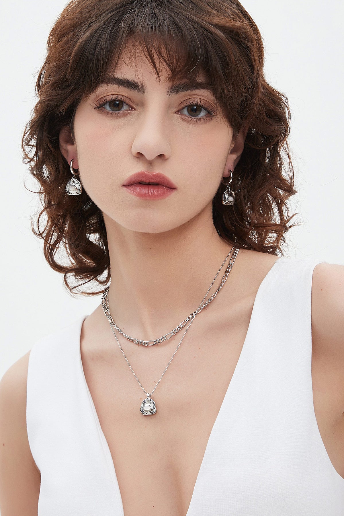 Aria Silver Gemstone Pendant Necklace Layer Set-Translucent White