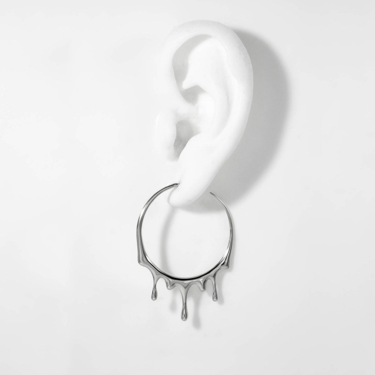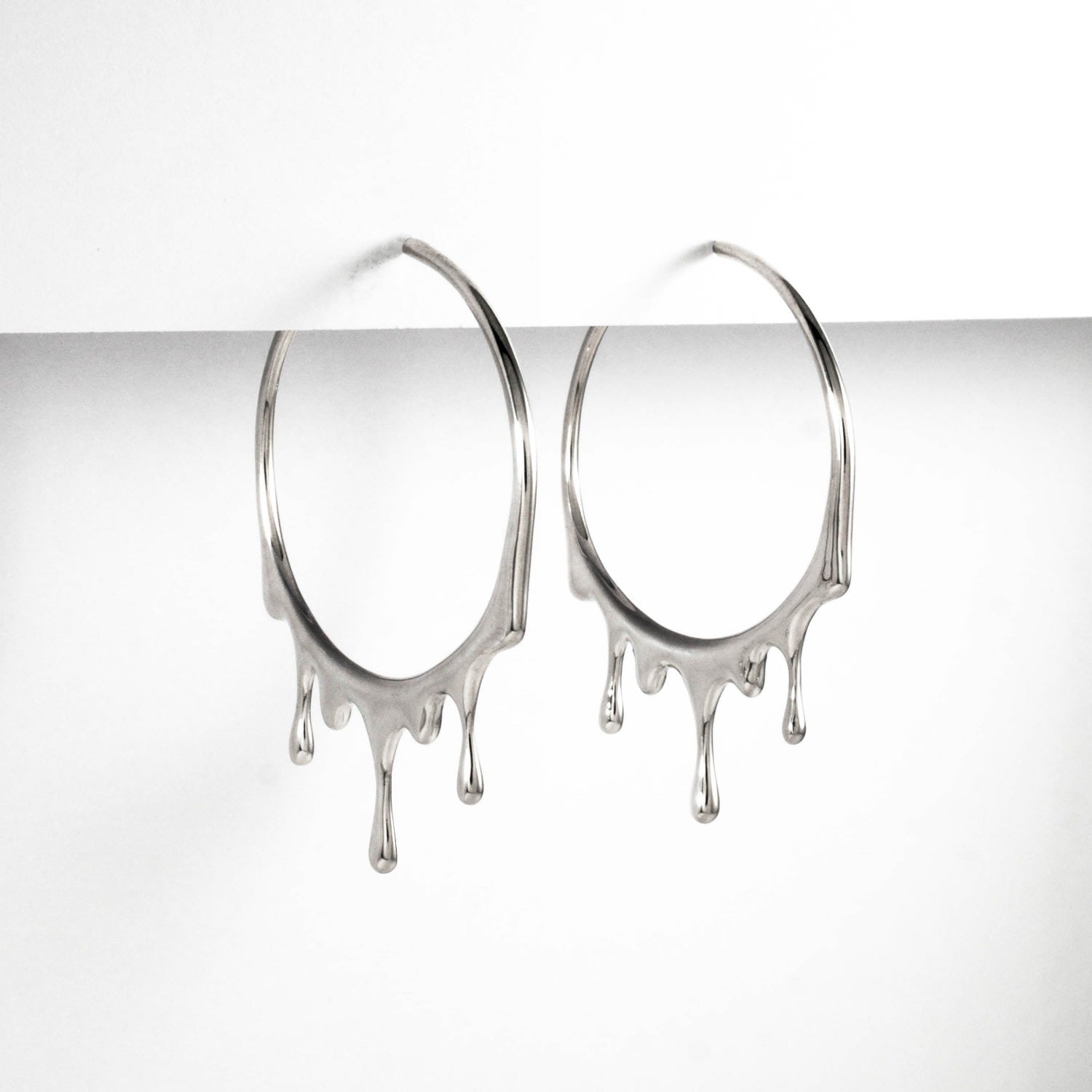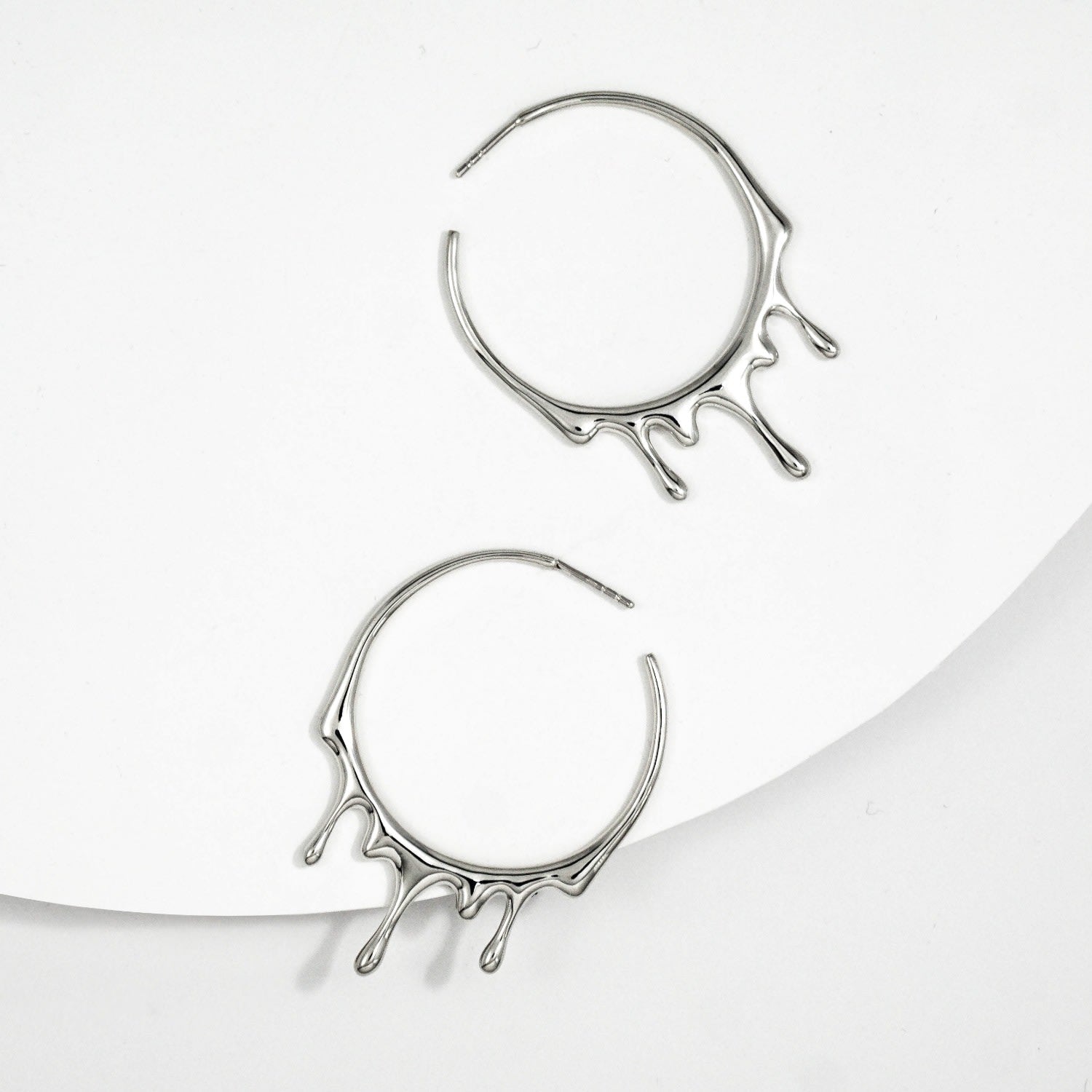 Dripping Circular M-1 Sterling Silver Hoop Earrings
