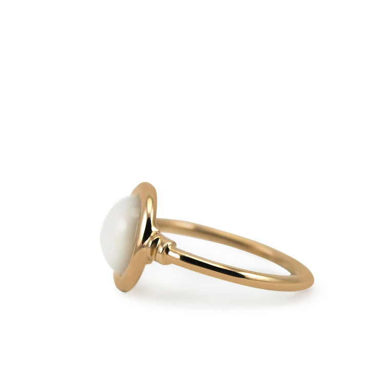 This Satellite Rose Gold Vermeil Moonstone Ring by Vintouch Italy is a dreamy balance of celestial inspiration and Italian craftsmanship. Centered with a luminous white moonstone cabochon, it radiates serenity and sophistication. A versatile ring that enhances everyday wear with a touch of ethereal beauty.