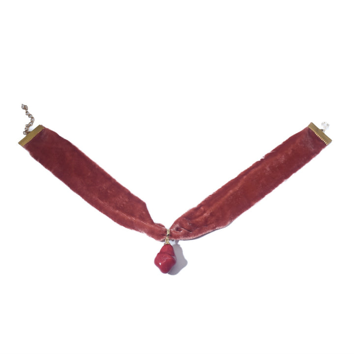 Coral Drop Gothic Porcelain Pendant Silk Velvet Choker