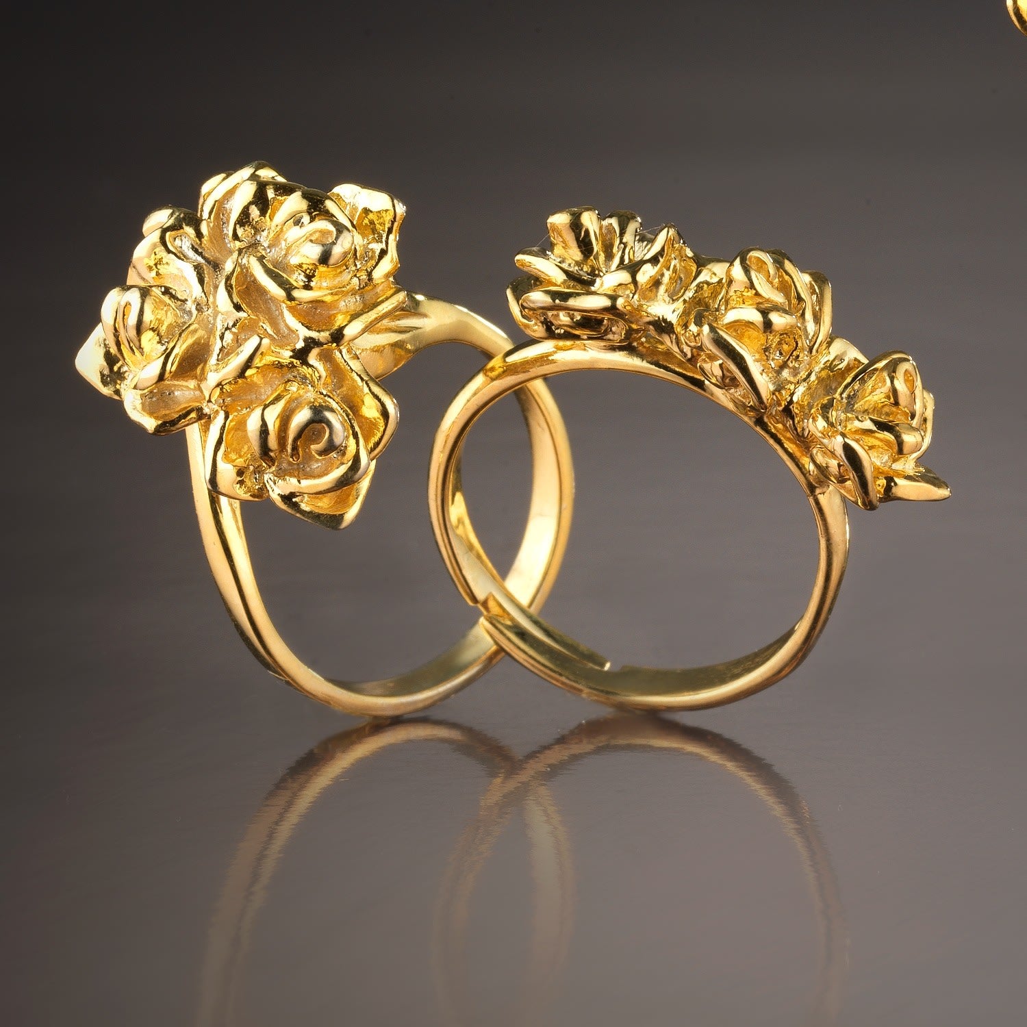 Gold-Plated, Sterling Silver Adjustable Ring With Raised Roses