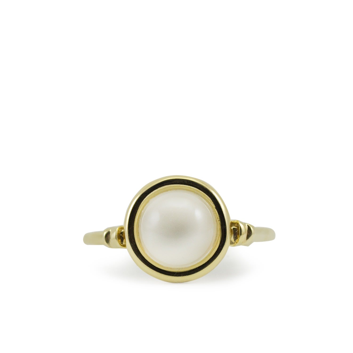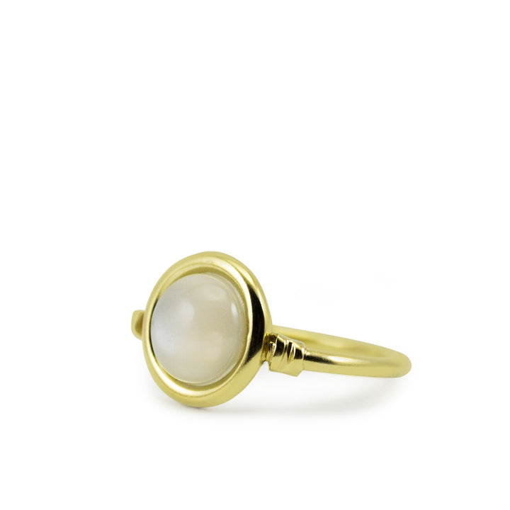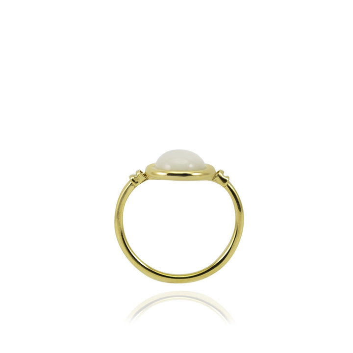 This ring is handmade in Italy from 18-karat gold vermeil. It features a white moonstone. The piece is nickel-free.